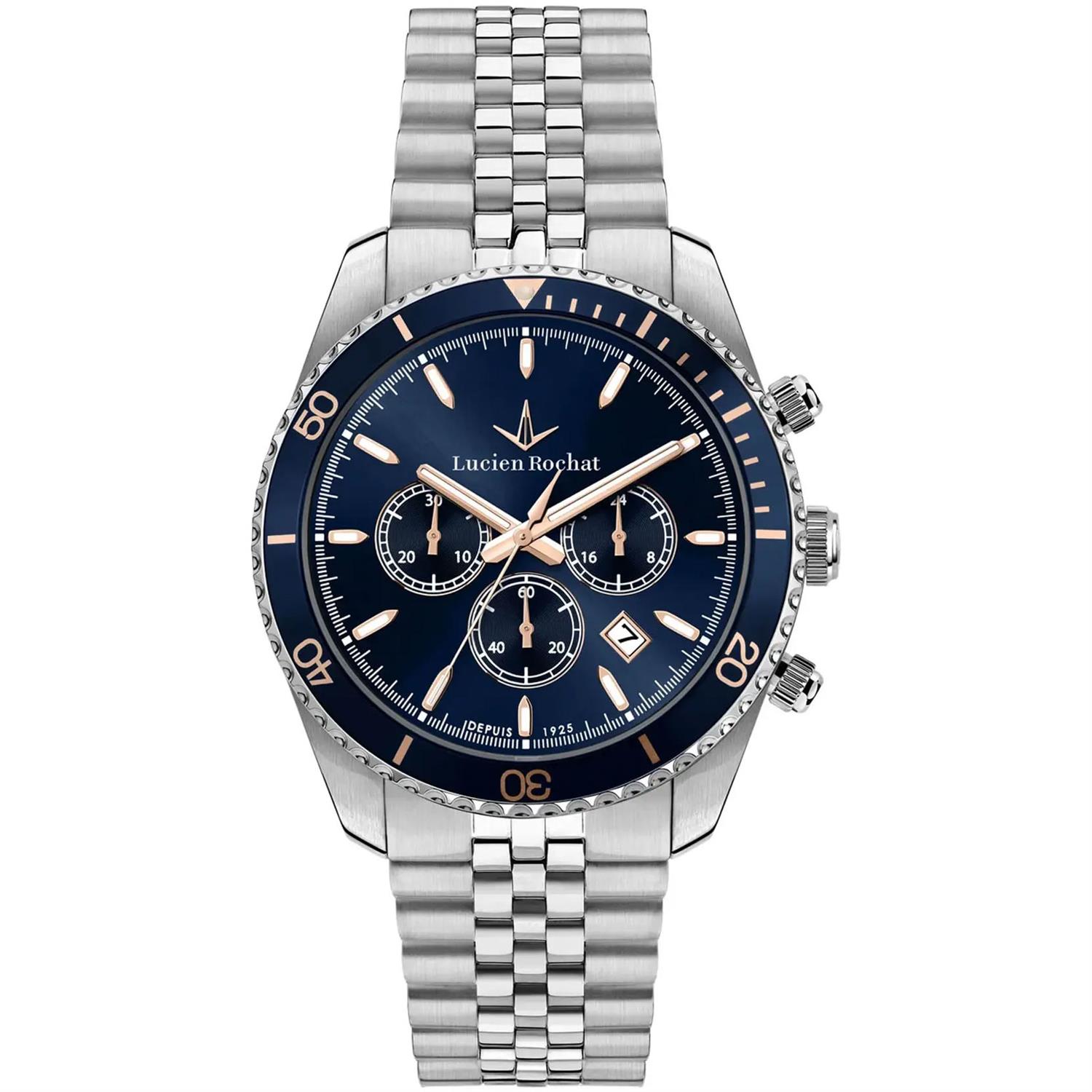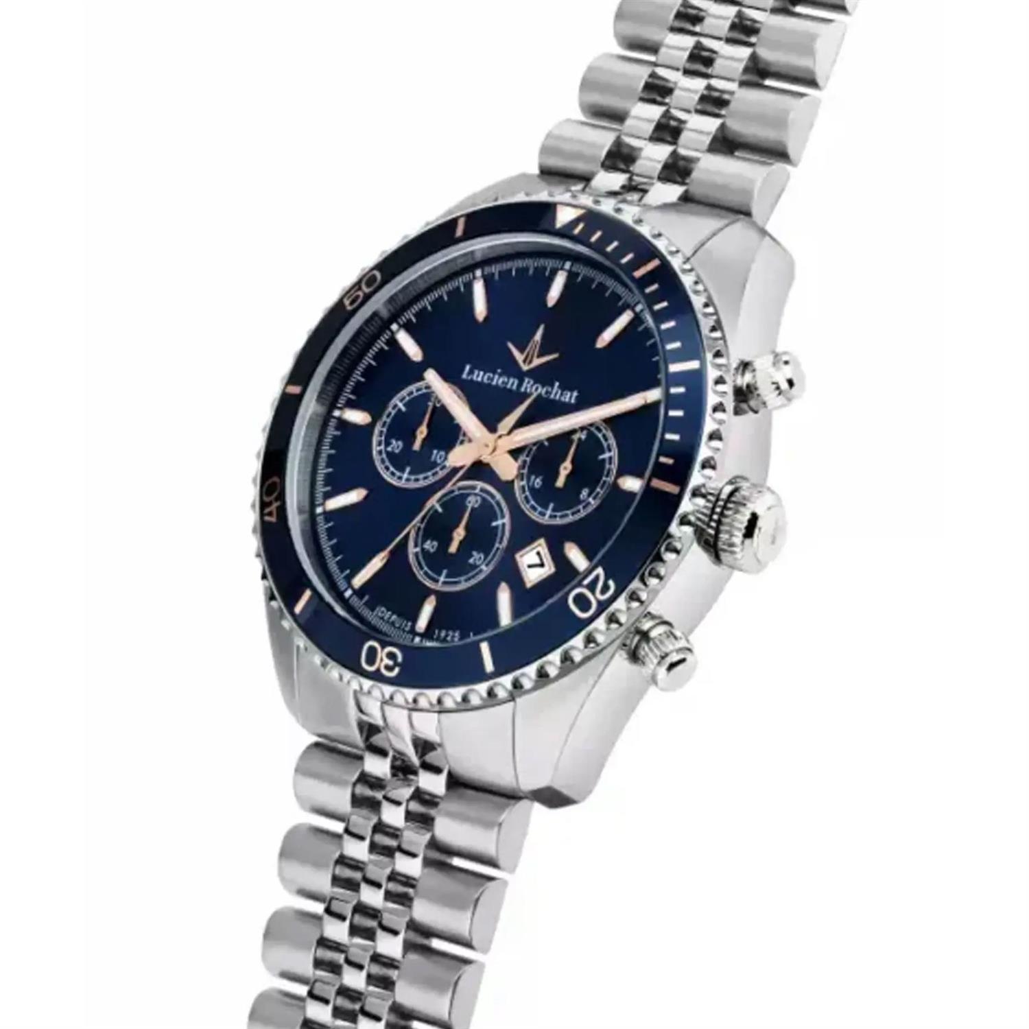 ساعت مچی مردانه لوسین روشا lucian rochat با طراحی روزانه بند استیل و قاب گرد سرمه ای استیل و صفحه گرد سرمه ای با قابلیت تقویم /شب نما /کرنوگراف / زه چرخان و موتور ژاپنی با انرژی باتری و مقاوم در برابر آب تا عمق 100متر به همراه گارانتی بین المللی