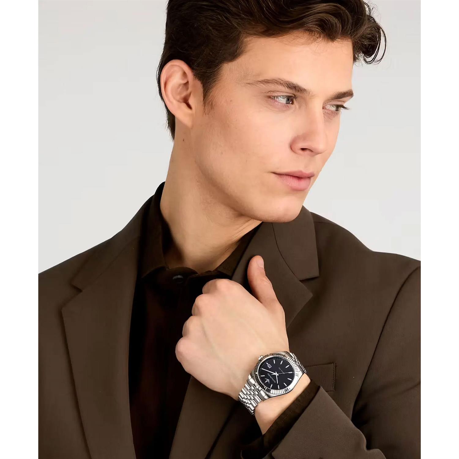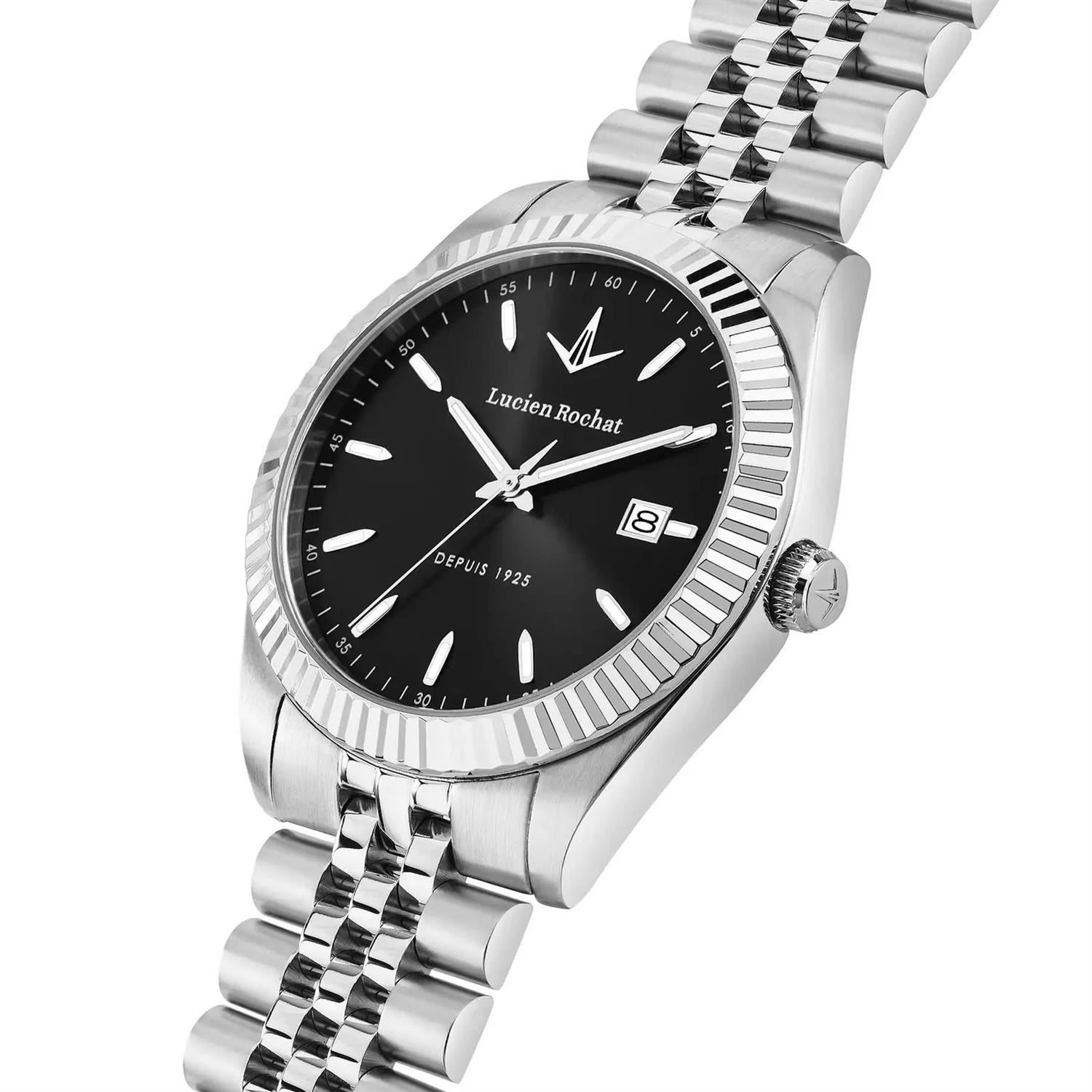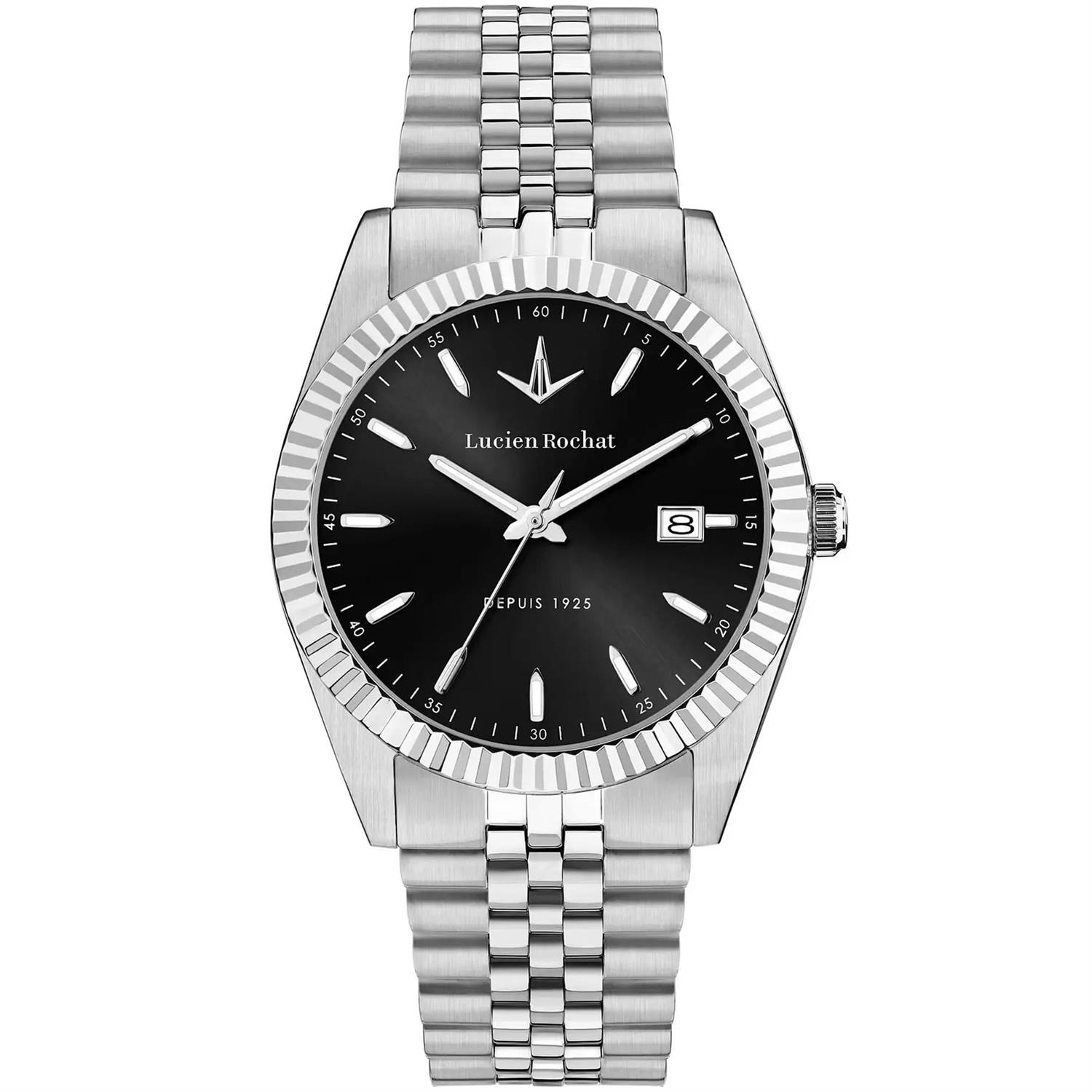 ساعت مچی مردانه لوسین روشا lucian rochat با طراحی روزانه بند استیل و قاب گرد استیل و صفحه گرد مشکی با قابلیت تقویم /شب نما و موتور ژاپنی با انرژی باتری و مقاوم در برابر آب تا عمق 50 متر به همراه گارانتی بین المللی