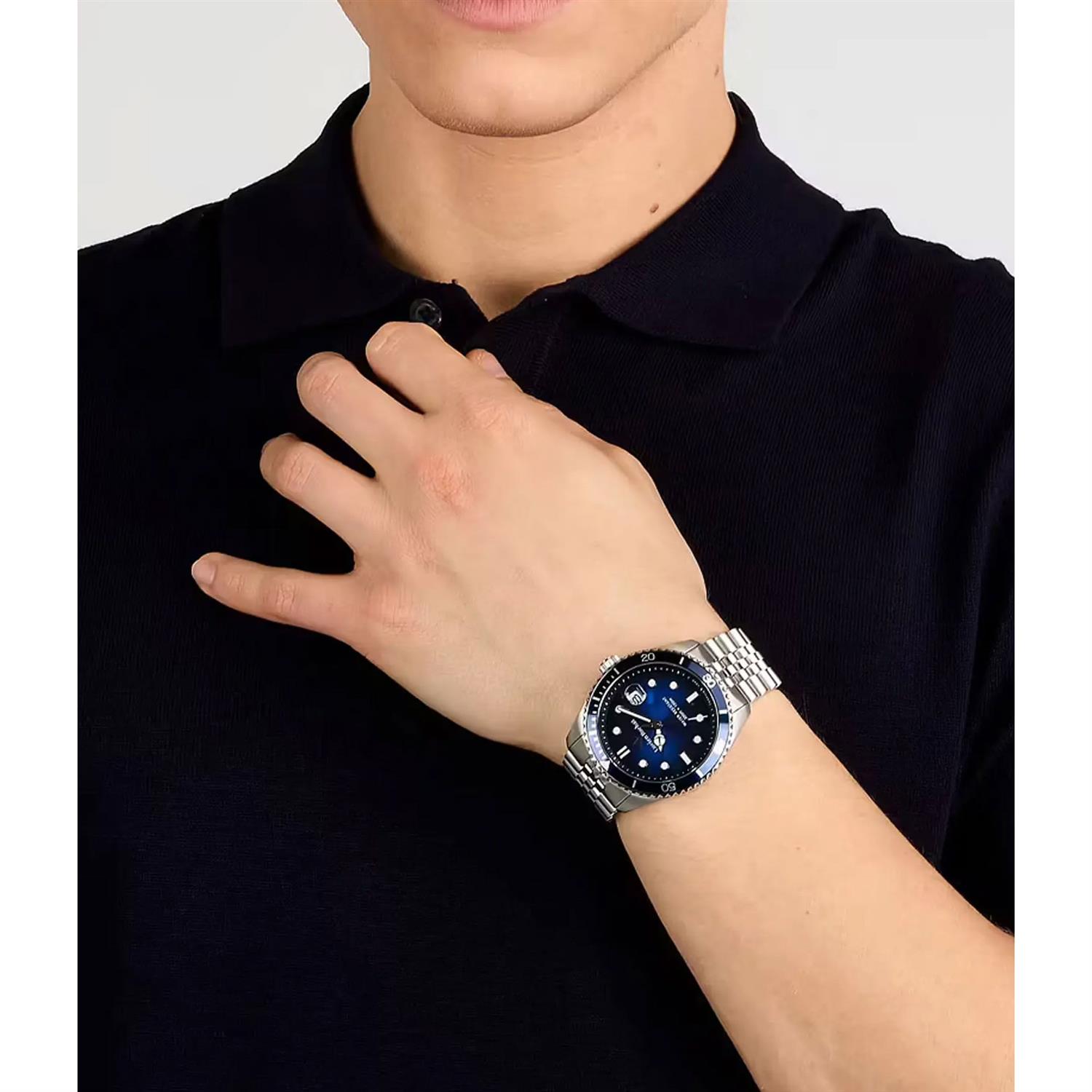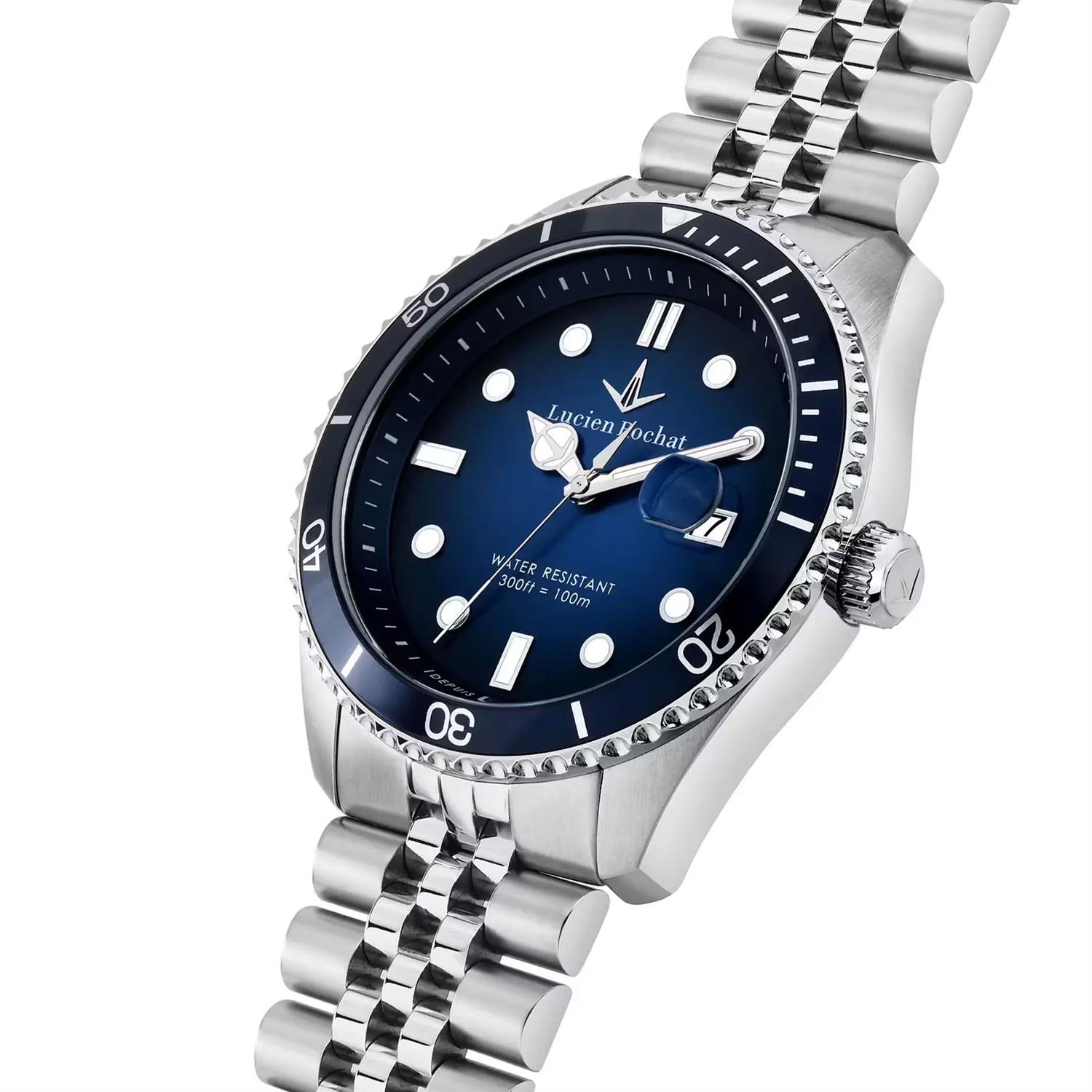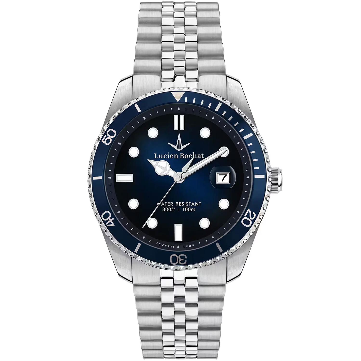 ساعت مچی مردانه لوسین روشا lucian rochat با طراحی روزانه بند استیل و قاب گرد سرمه ای استیل و صفحه گرد سرمه ای با قابلیت تقویم /شب نما/ زه چرخان و موتور ژاپنی با انرژی باتری و مقاوم در برابر آب تا عمق 100 متر به همراه گارانتی بین المللی