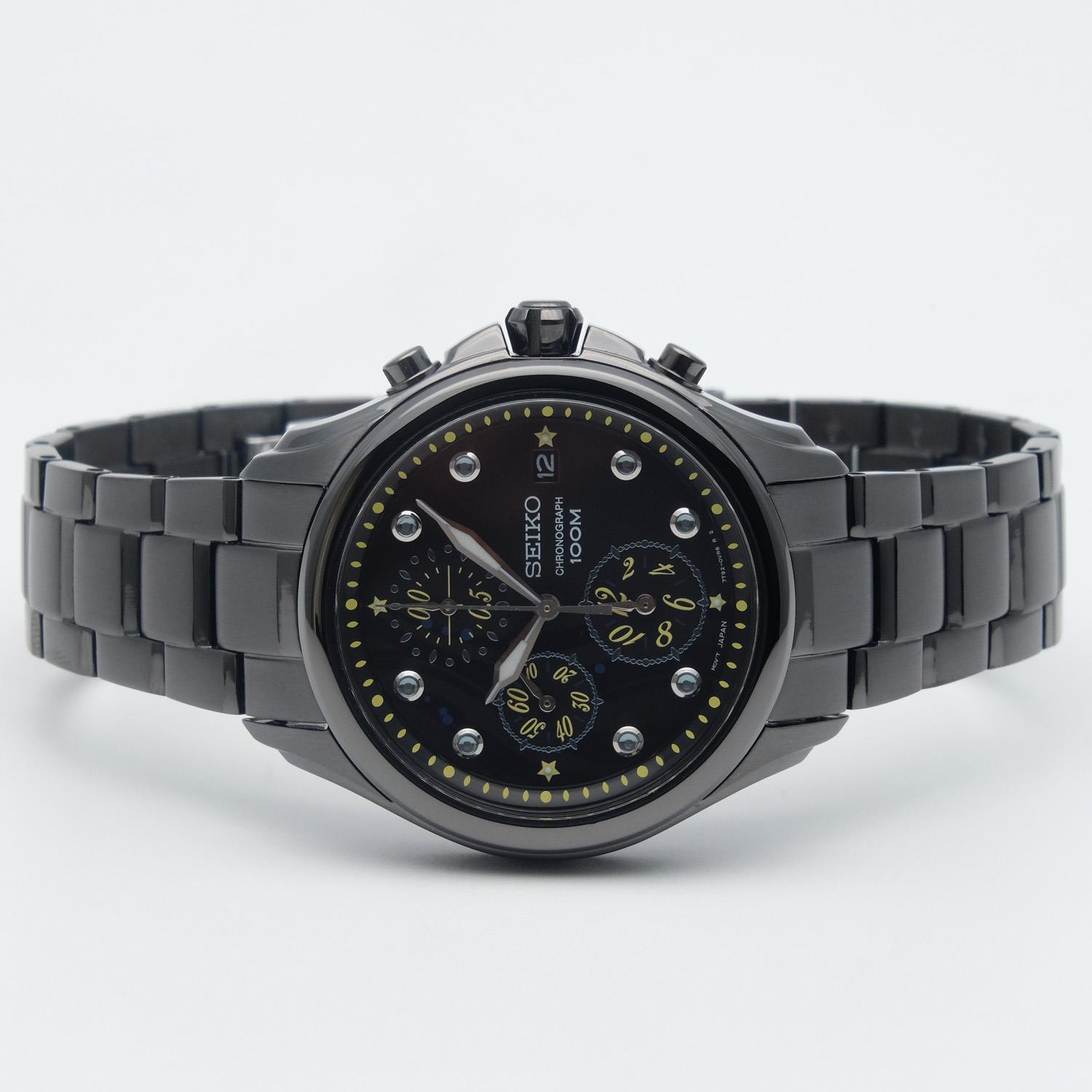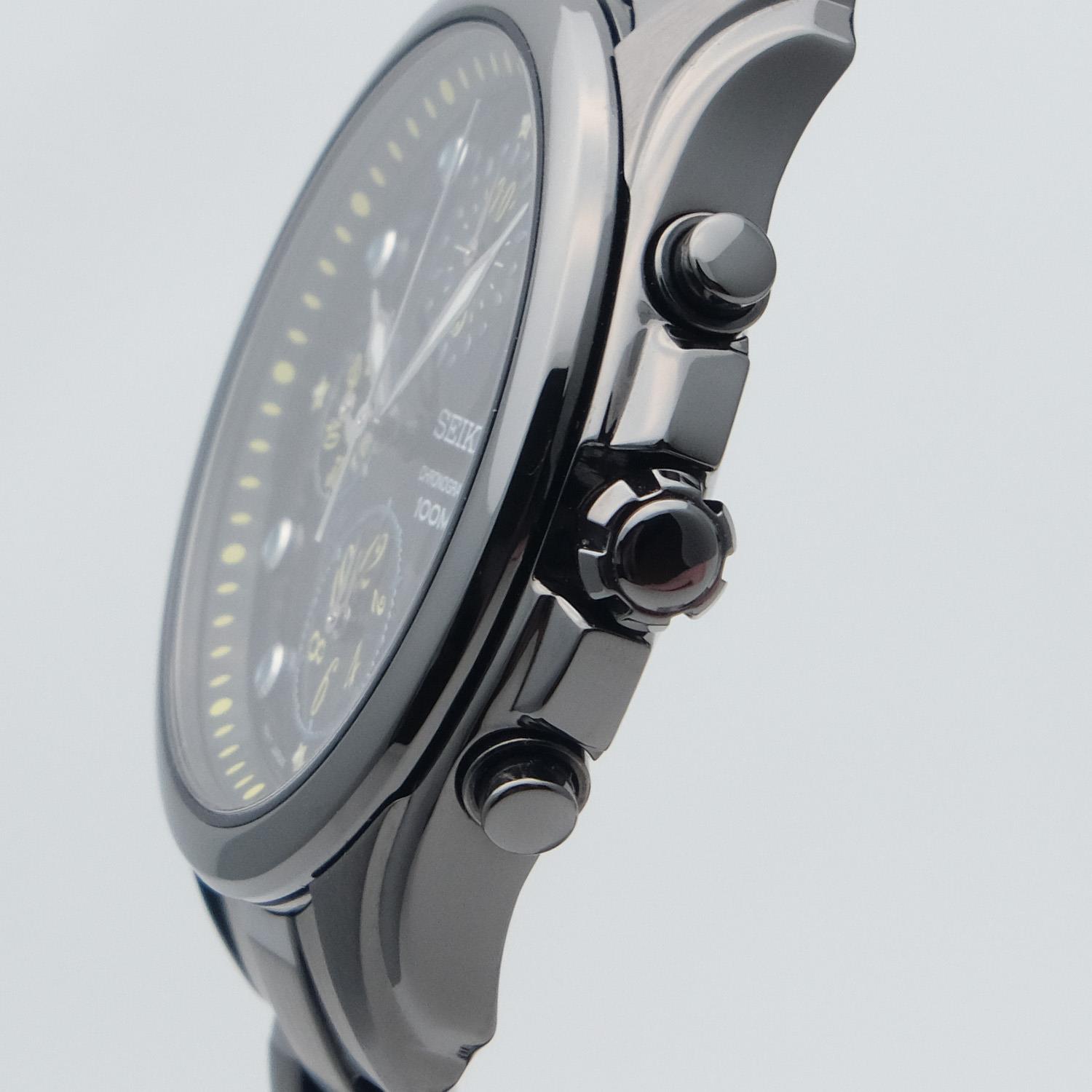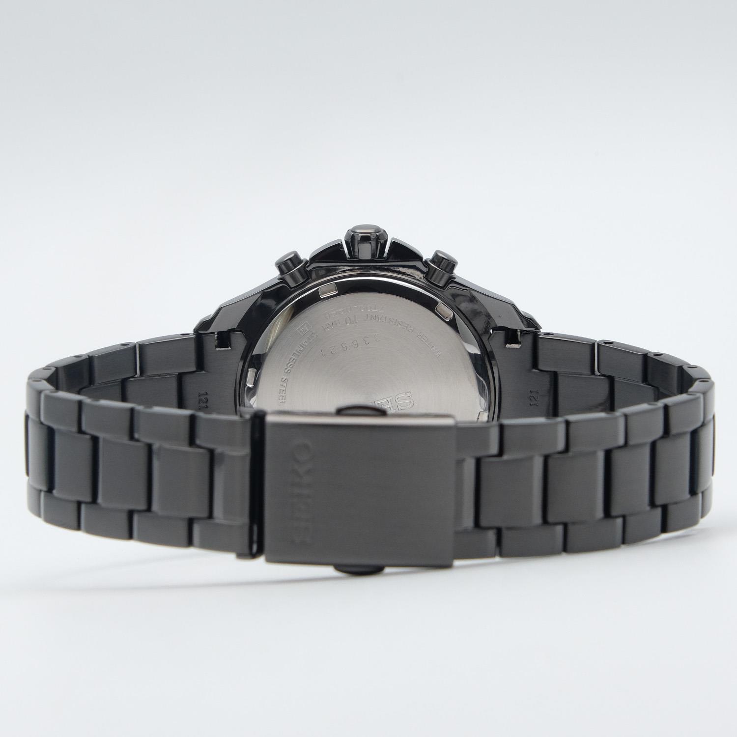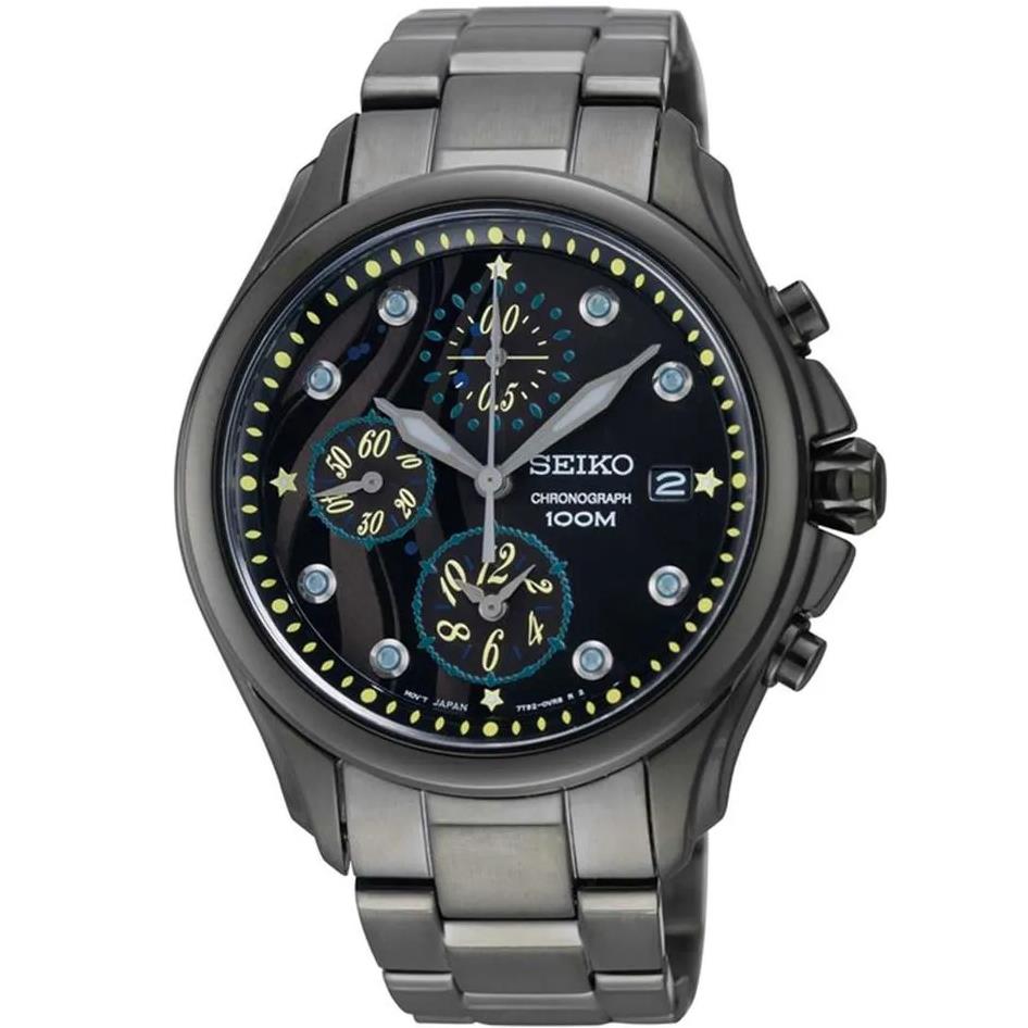 ساعت مچی مردانه سیکو seiko با طراحی روزانه بند فلزی دودی , قاب گرد دودی و صفحه گرد مشکی و قابلیت داشتن تقویم کرنوگراف شبنما و موتور ژاپنی با انرژی باتری و مقاوم در برابر آب تا عمق 100 متر به همراه گارانتی بین المللی
