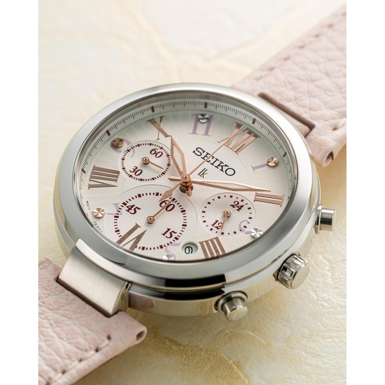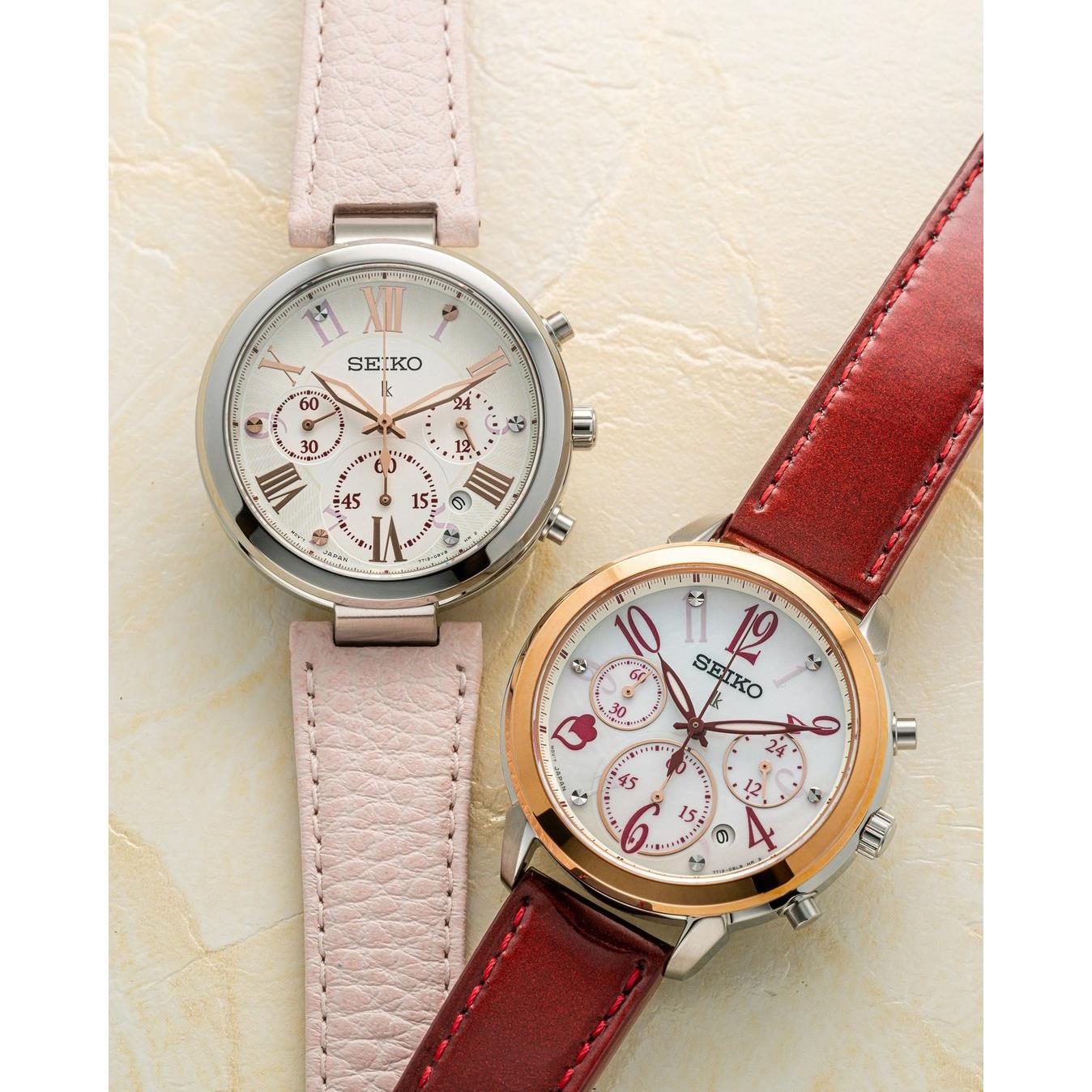 ساعت مچی زنانه سیکو SEIKO با طراحی کلاسیک بند چرمی صورتی با قاب استیل و صفحه گرد سفید با شیشه ضد خراش و قابلیت داشتن تقویم / شب نما / کرنوگراف و موتور ژاپنی با انرژی مکانیکی و مقاومت در برابر آب تا عمق 100 متر به همراه دو سال گارانتی بین المللی