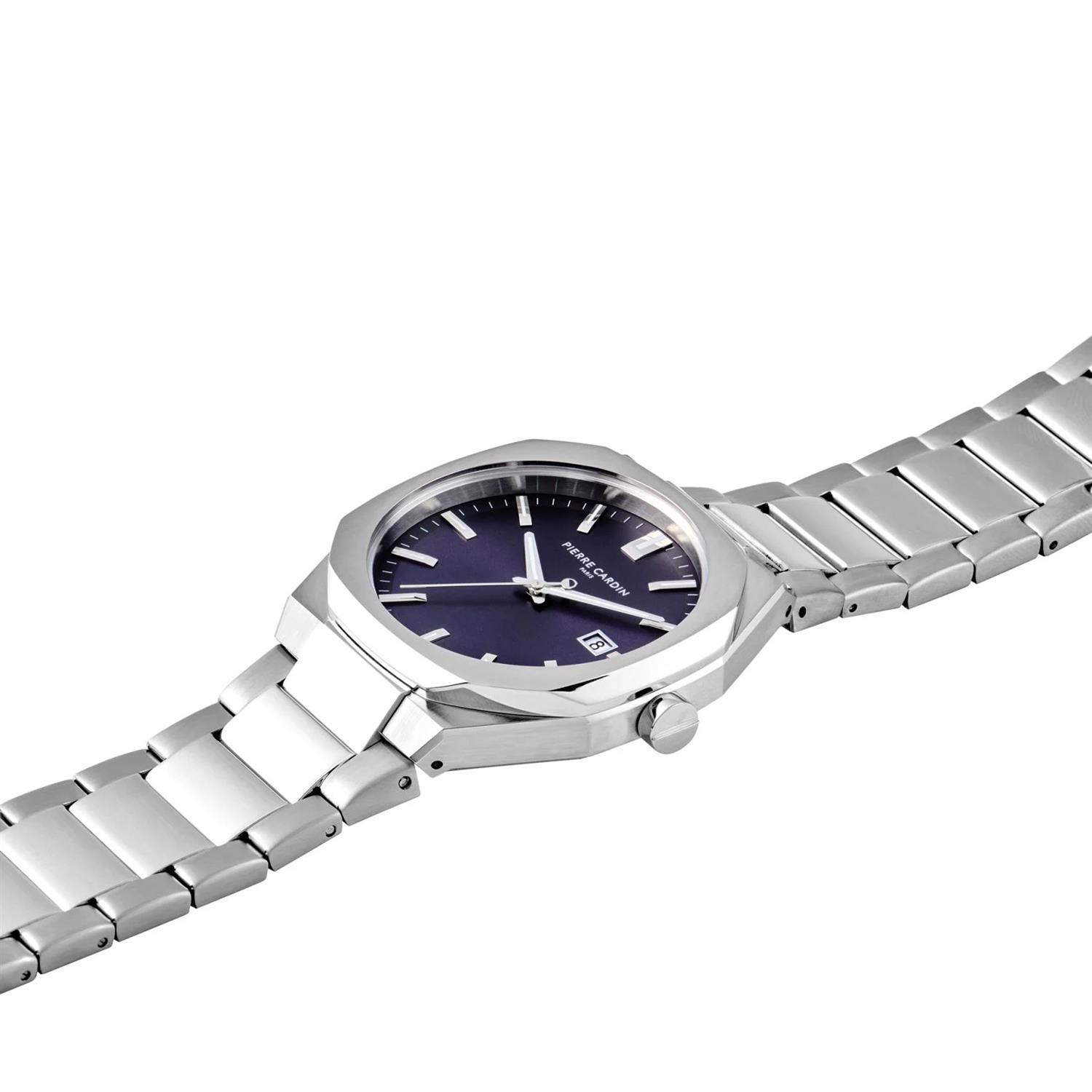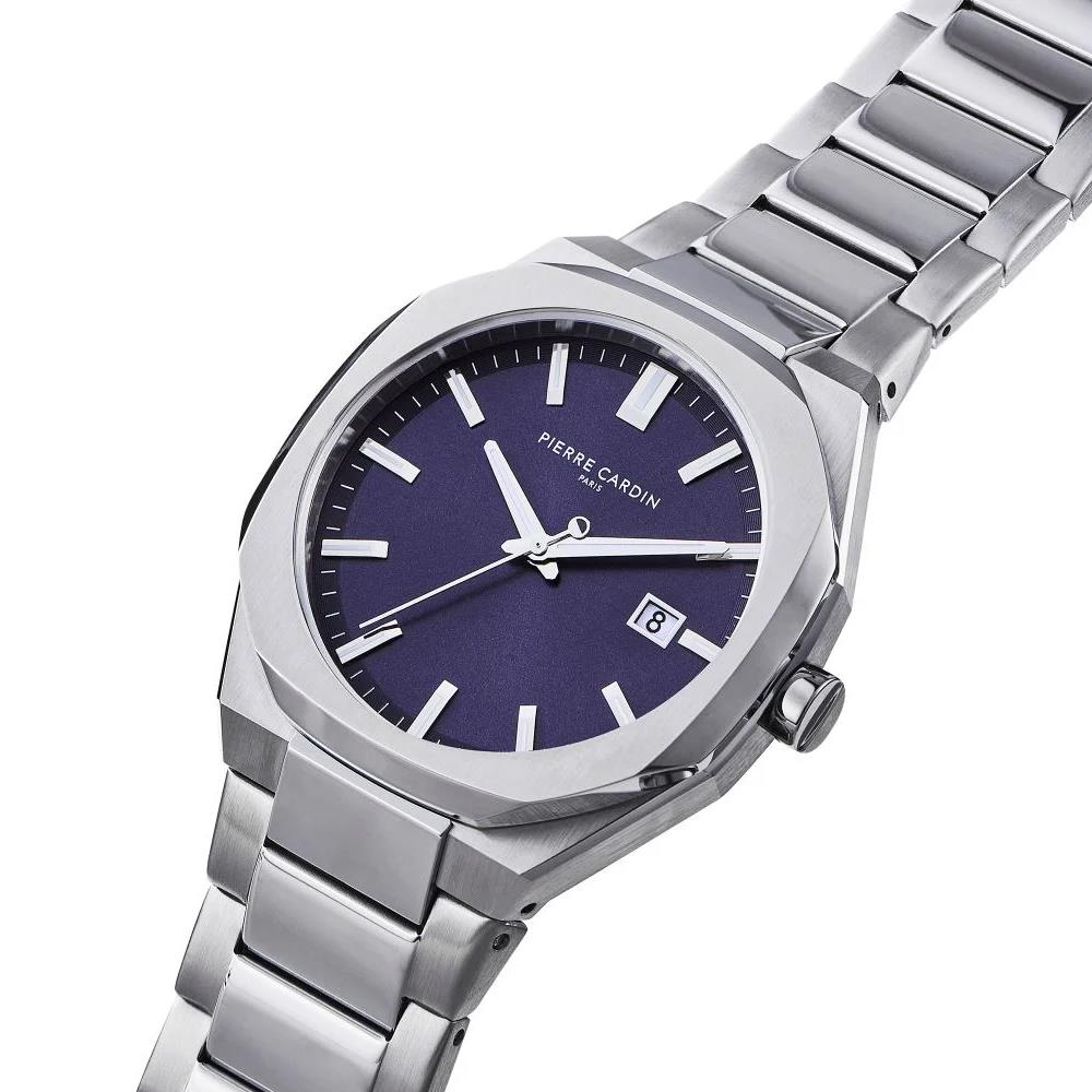 ساعت مچی مردانه پیرکاردین pierrecardin با طراحی روزانه بند استیل و قاب متفاوت استیل و صفحه گرد سرمه ای با قابلیت داشتن تقویم / شب نما و موتور ژاپنی و انرژی باتری و مقاومت در برابر آب تا عمق 50 متر به همراه دو سال گارانتی بین المللی