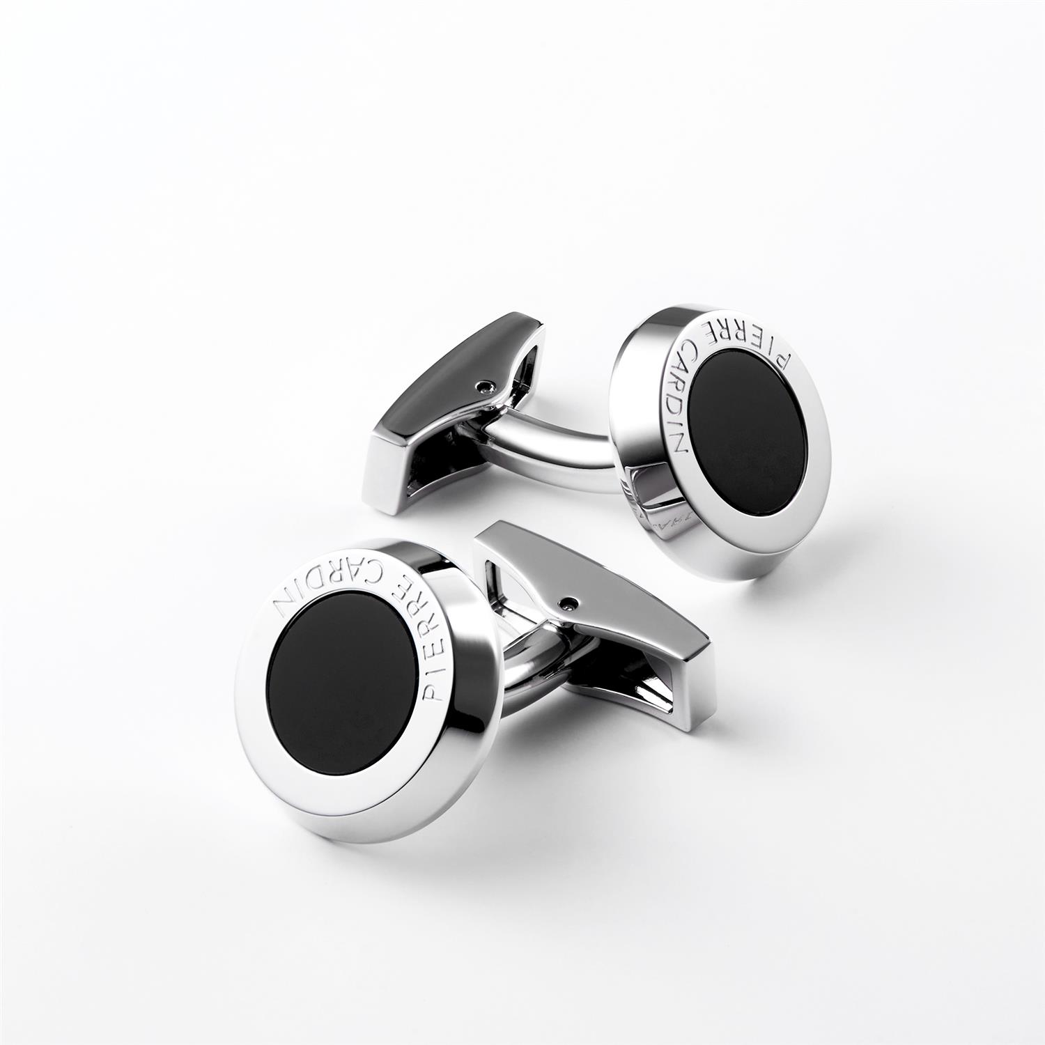 دکمه سر آستین پیرکاردین Pierre Cardin با طراحی کلاسیک از جنس استیل به رنگ نقره ای مزین شده با سنگ مشکی به همراه گارانتی اصالت کالا