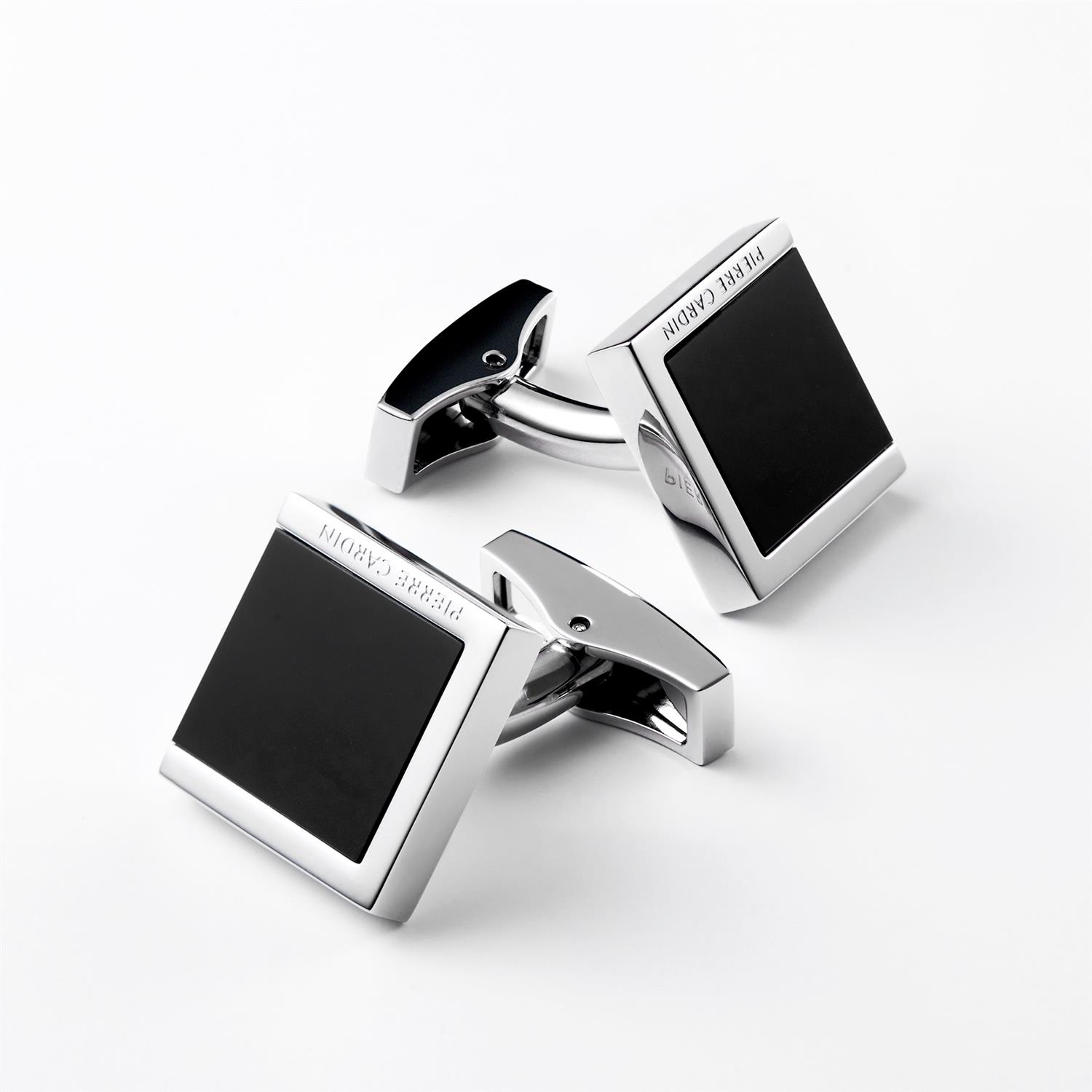 دکمه سر آستین پیرکاردین Pierre Cardin با طراحی کلاسیک از جنس استیل به رنگ نقره ای مزین شده با سنگ مشکی به همراه گارانتی اصالت کالا