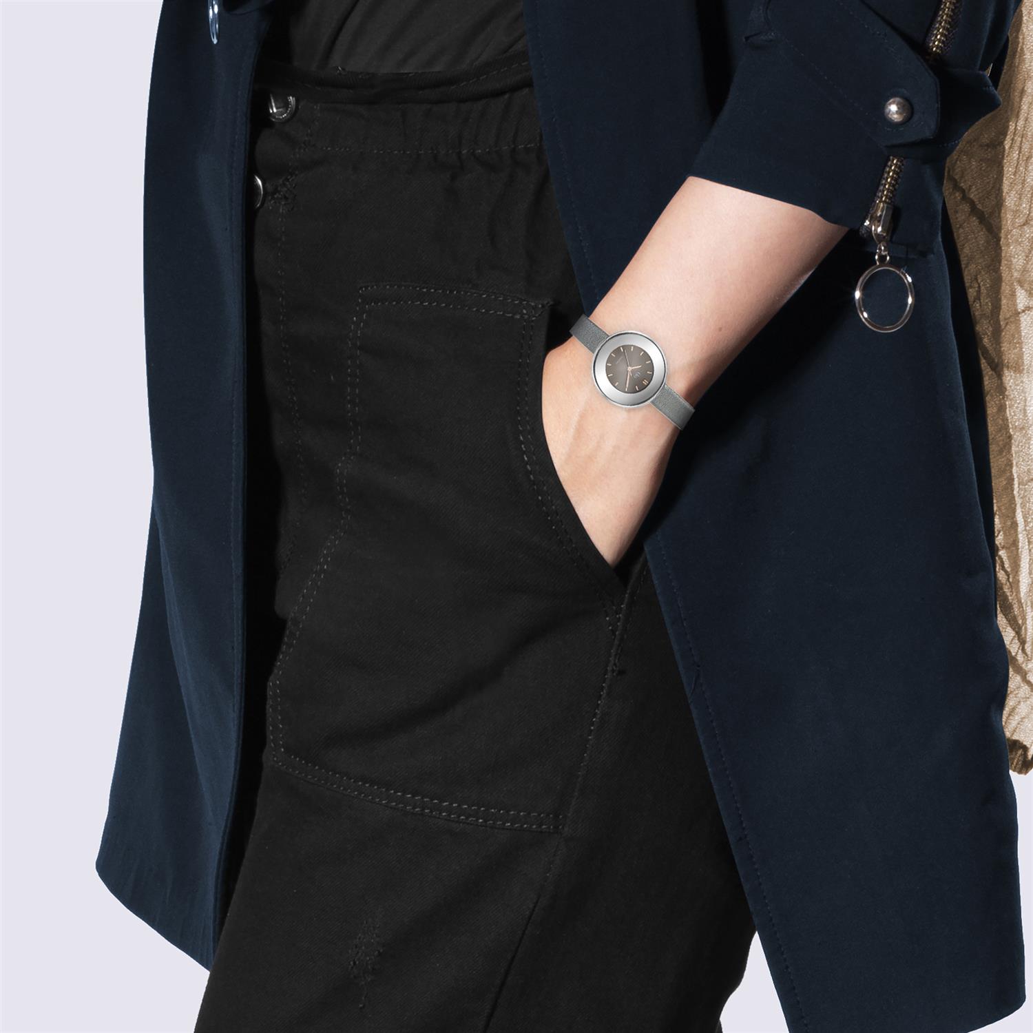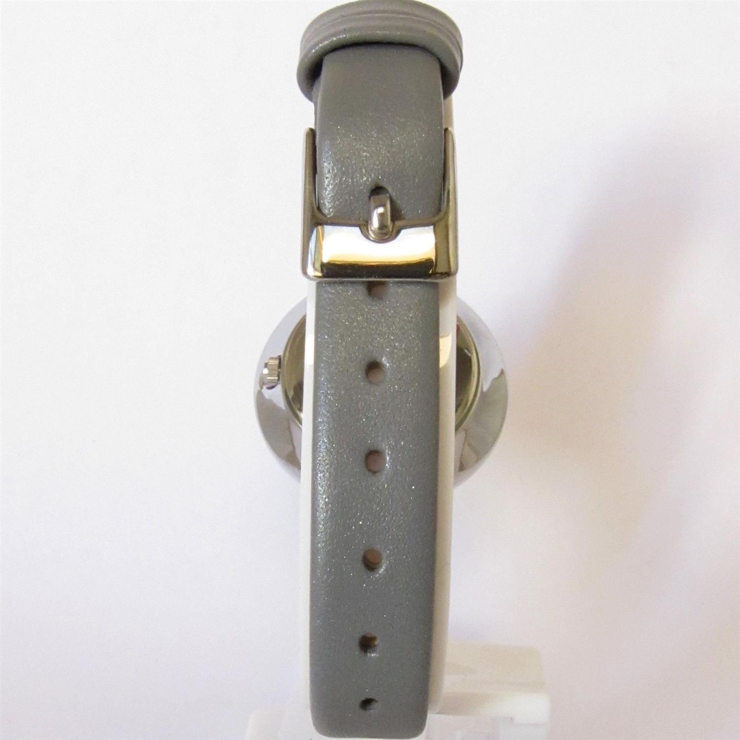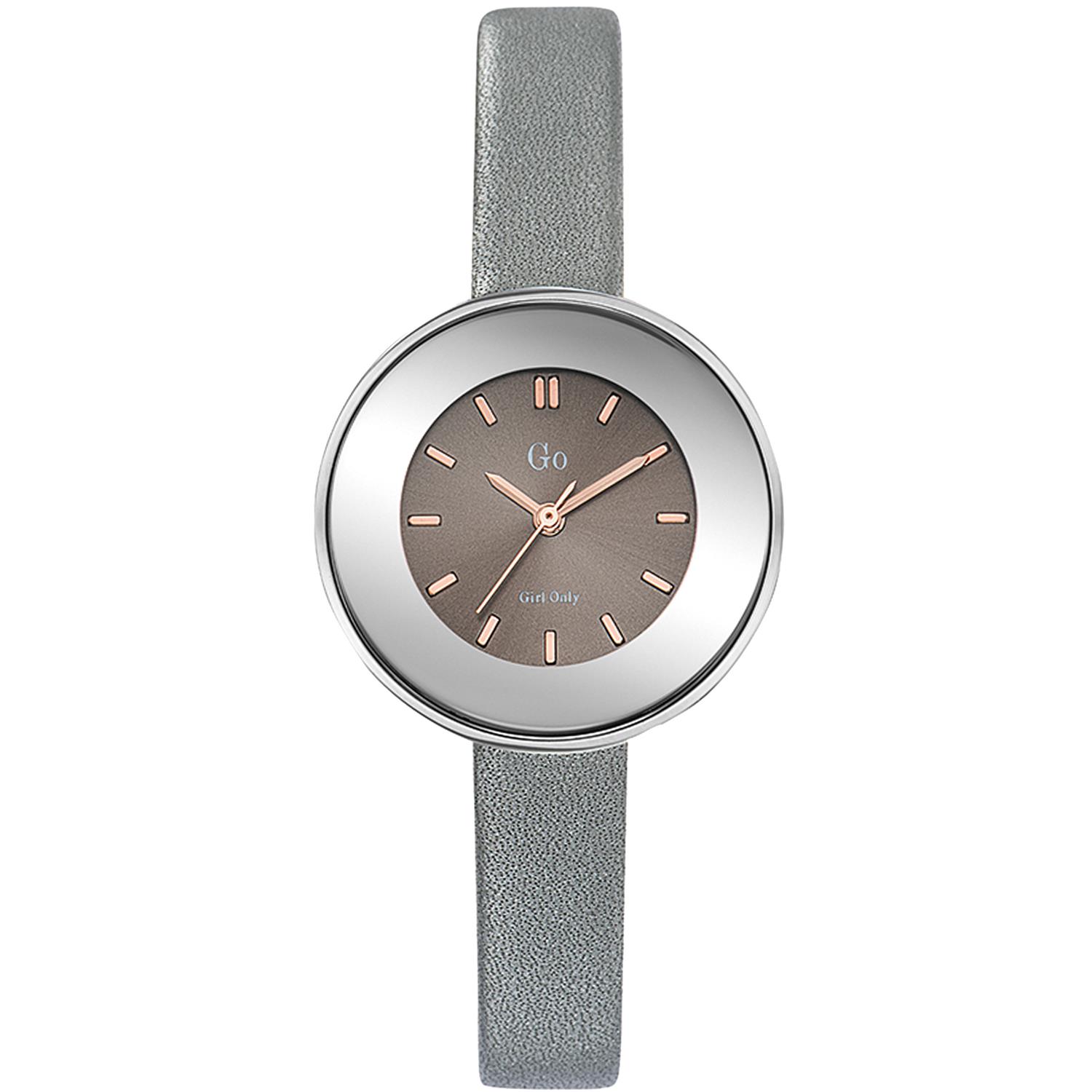 ساعت مچی زنانه جی او go با طراحی روزانه بند چرمی طوسی و قاب فلزی و صفحه گرد قهوه ای با موتور ژاپنی و انرژی باتری و مقاومت در برابر آب تا عمق 30 متر به همراه دو سال گارانتی بین المللی