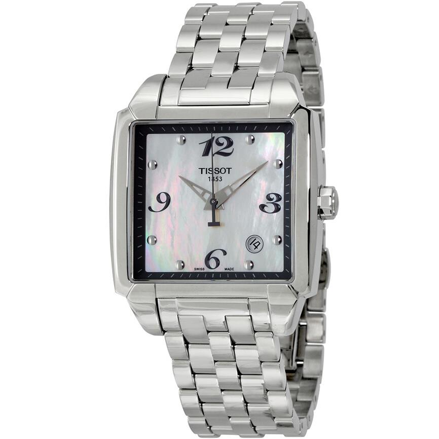 ساعت مچی مردانه TISSOT با طراحی اسپرت بند استیل و قاب مربع استیل با صفحه سفید صدفی و شیشه ضد خراش با موتور سوییسی با قابلیت تقویم و انرژی باطری و مقاوم در برابر آب تا عمق 100 متر به همراه گارانتی بین المللی