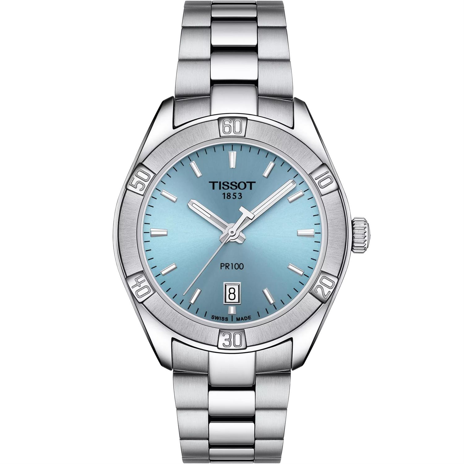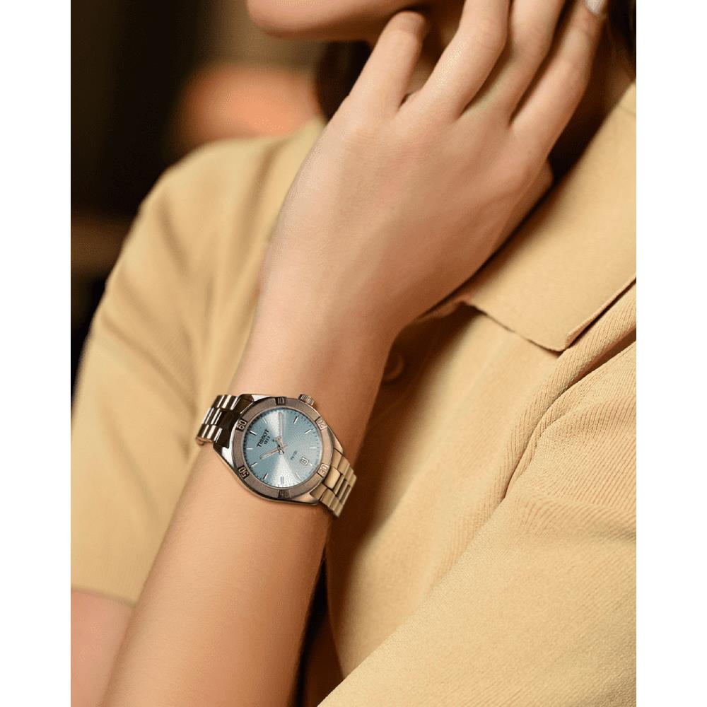 ساعت مچی زنانه TISSOT با طراحی اسپرت بند استیل با قاب گرد استیل و صفحه آبی با شیشه ضد خراش و ضد انعکاس نور و قابلیت داشتن تقویم / شب نما و موتور سوییسی با انرژی باتری و مقاوم در برابر آب تا عمق 100 متر به همراه گارانتی بین المللی
