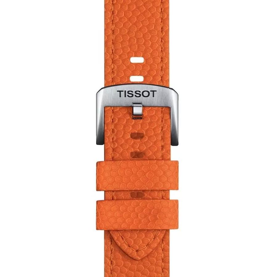 ساعت مچی مردانه TISSOT با طراحی روزانه بند چرمی دو رنگ با قاب استیل و صفحه  گرد نقره ای با نمایشگر عقربه ای با شیشه ضد خراش و ضد انعکاس نور و موتور سوییسی با  انرژی باتری و قابلیت داشتن تقویم شب نما زه چرخان و بند یدکی نارنجی رنگ و مقاوم در برابر آب تا عمق 300 متر به همراه گارانتی بین المللی