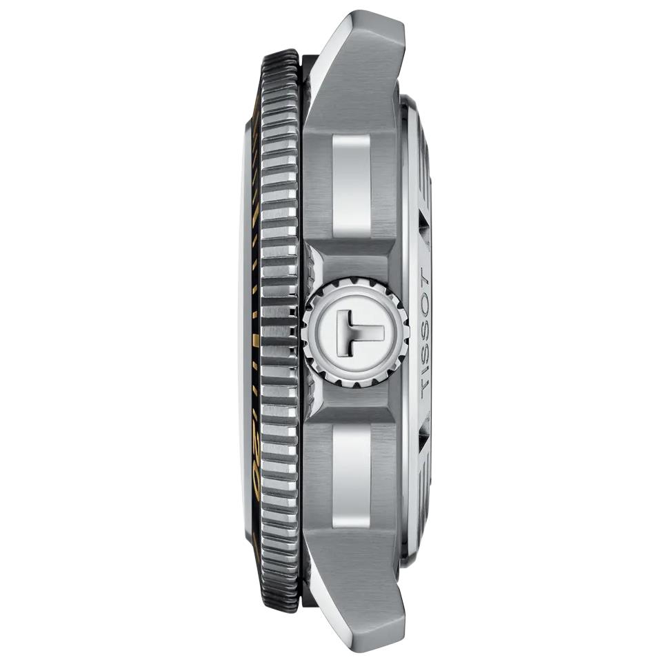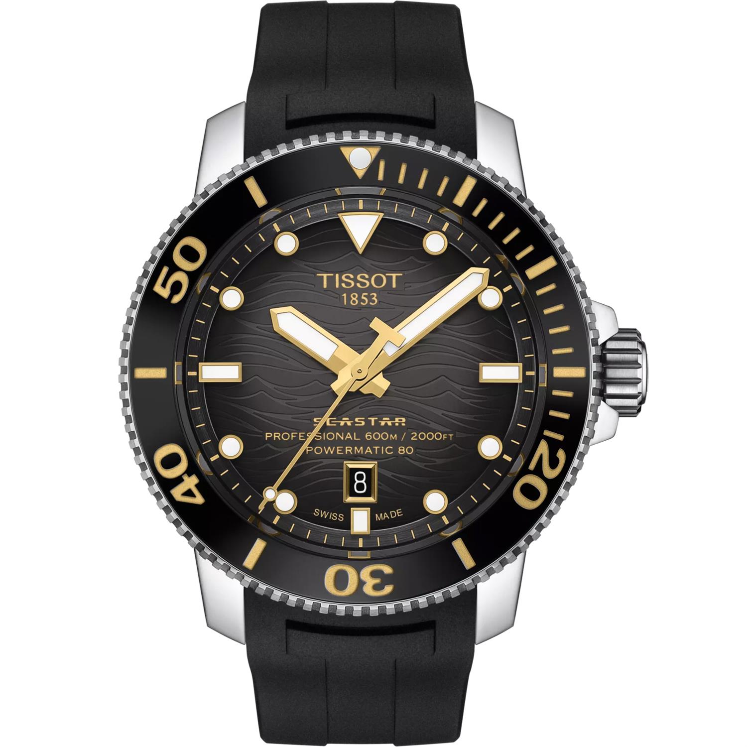 ساعت مچی مردانه TISSOT با طراحی روزانه بند سیلیکونی با قاب استیل مشکی و صفحه  گرد مشکی با نمایشگر عقربه ای با شیشه ضد خراش و ضد انعکاس نور و موتور اتوماتیک سوییسی با  انرژی مکانیکی و قابلیت داشتن تقویم شب نما زه تاچی متر و مقاوم در برابر آب تا عمق 600 متر به همراه گارانتی بین المللی