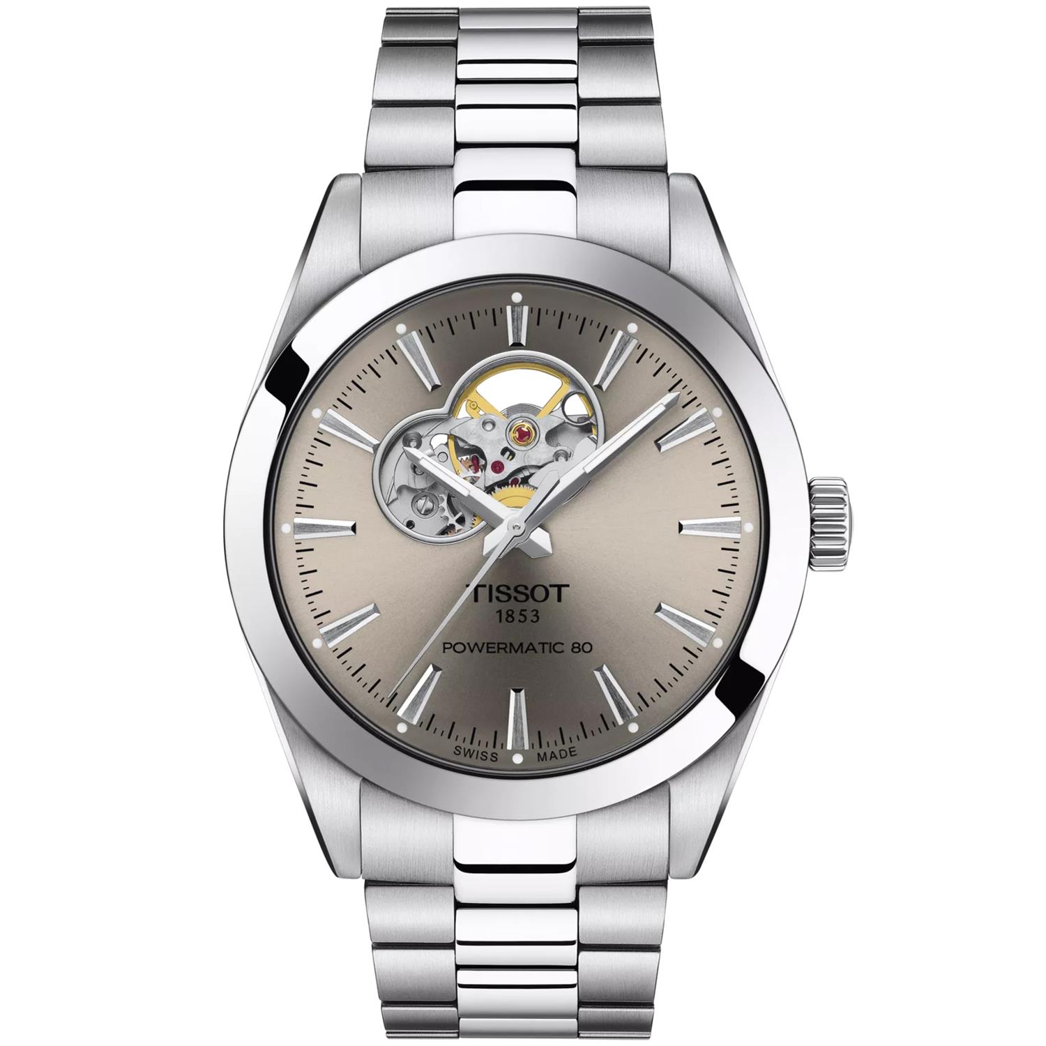 ساعت مچی مردانه TISSOT با طراحی روزانه بند استیل با قاب استیل و صفحه قلب باز  طوسی با نمایشگر عقربه ای با شیشه ضد خراش و ضد انعکاس نور و موتور اتوماتیک سوییسی با  انرژی مکانیکی و قابلیت داشتن تقویم شب نما و مقاوم در برابر آب تا عمق 100 متر به همراه گارانتی بین المللی
