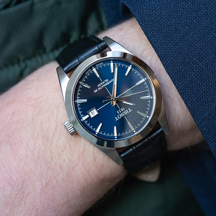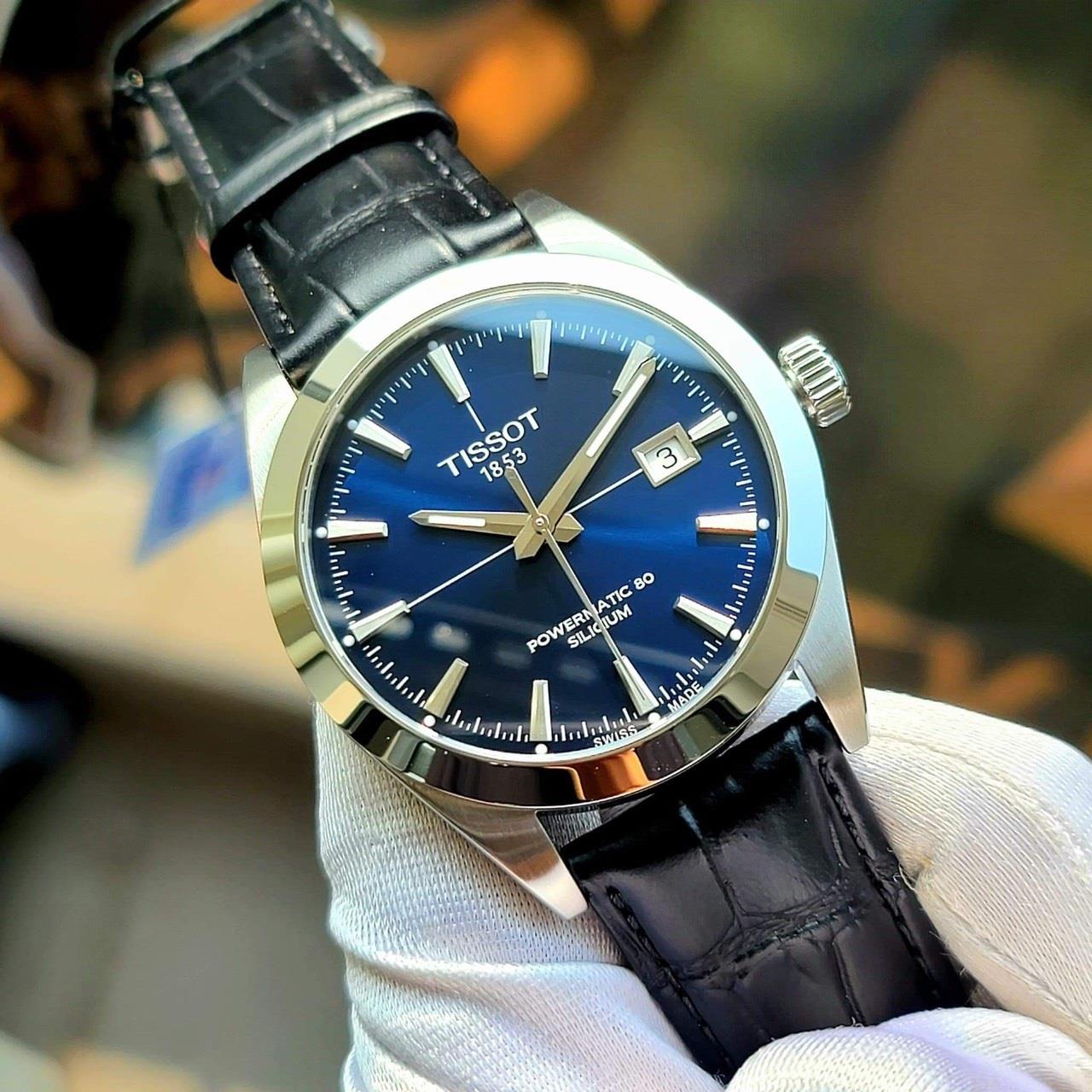 ساعت مچی مردانه TISSOT با طراحی روزانه بند چرمی با قاب استیل و صفحه گرد سرمه ای با نمایشگر عقربه ای با شیشه ضد خراش و موتور اتوماتیک سوییسی با انرژی مکانیکی و قابلیت داشتن تقویم شب نما و مقاوم در برابر آب تا عمق 100 متر به همراه گارانتی بین المللی