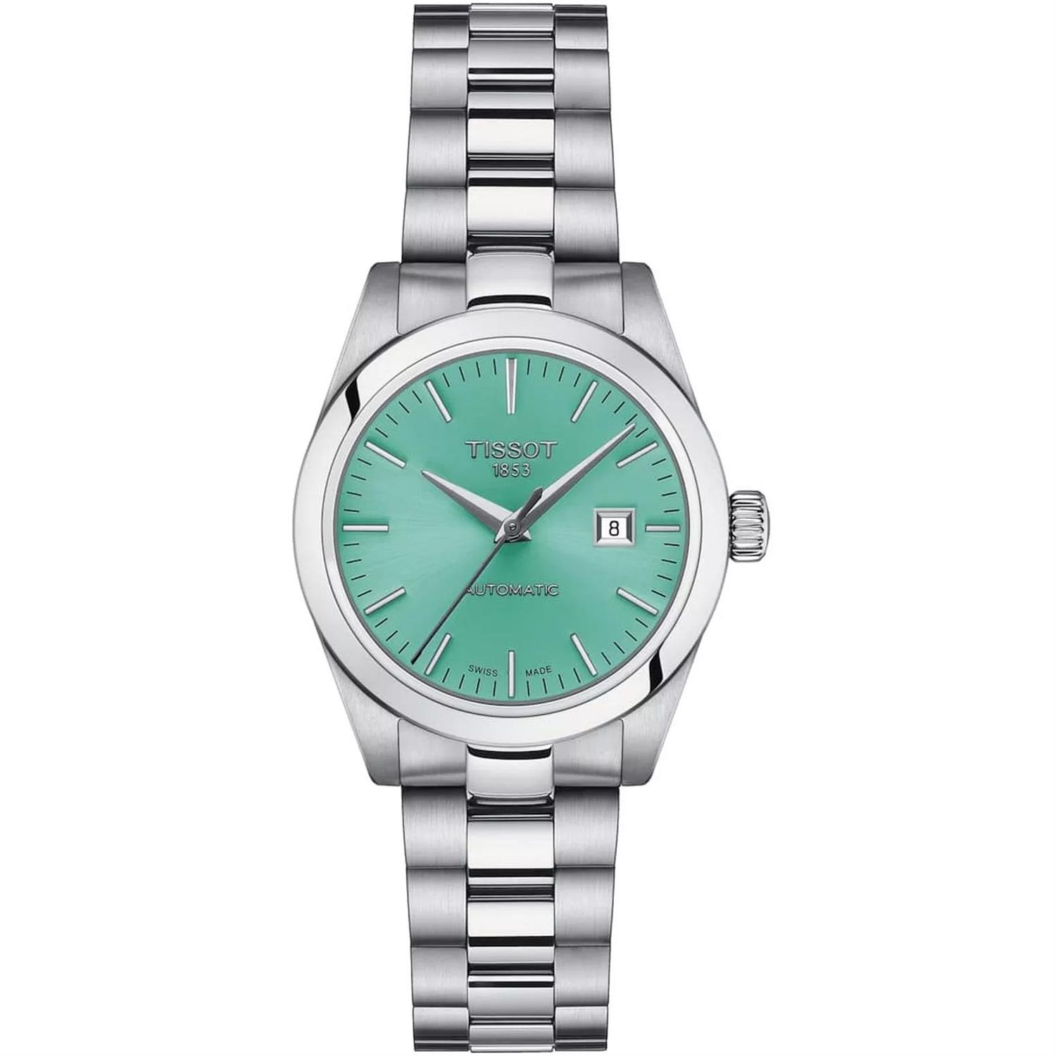 ساعت مچی زنانه TISSOT با طراحی روزانه بند استیل با قاب گرد استیل و صفحه گرد سبز با شیشه ضد خراش و ضد انعکاس و قابلیت داشتن تقویم و موتوراتوماتیک سوییسی با انرژی مکانیکی و مقاوم در برابر آب تا عمق 100 متر به همراه گارانتی بین المللی