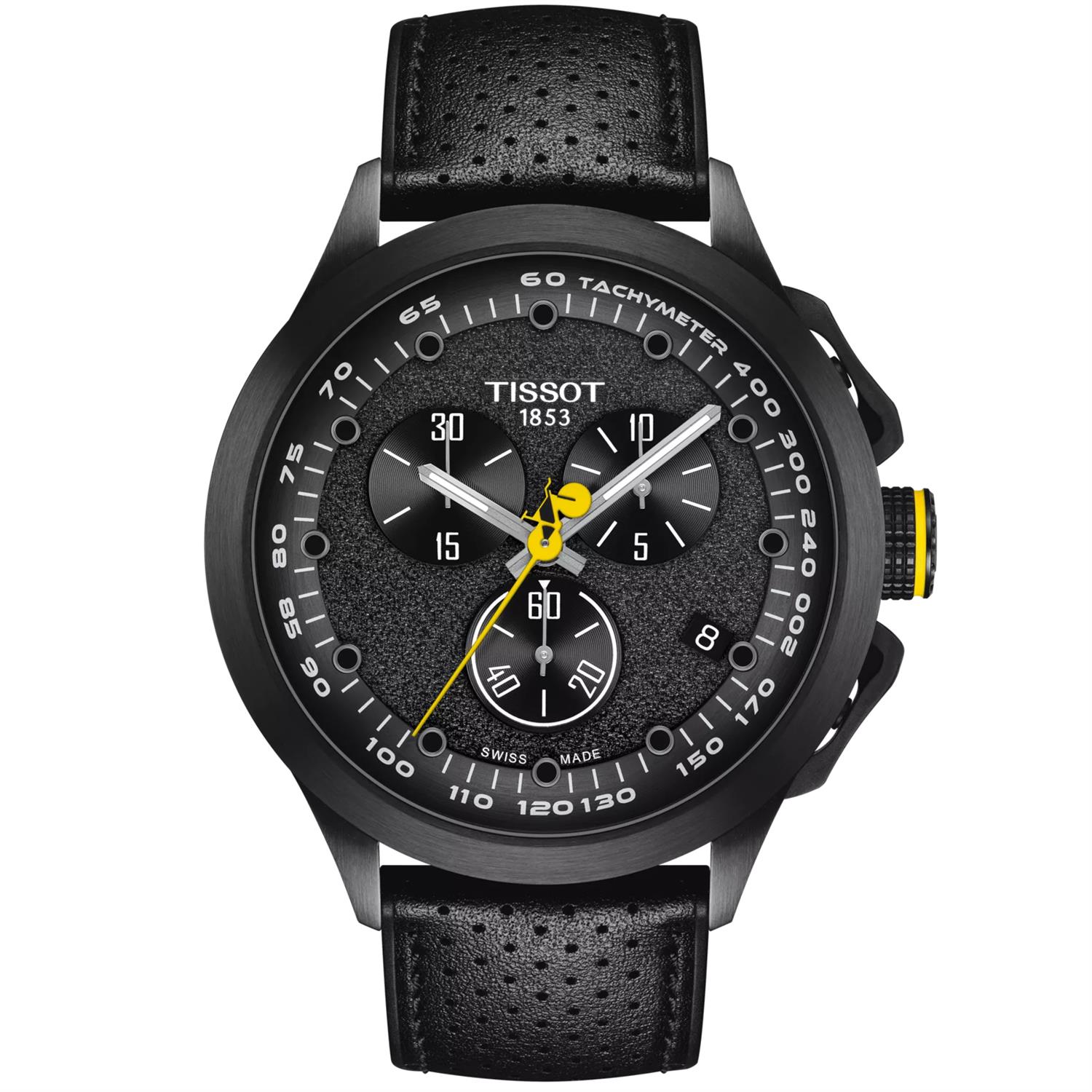 ساعت مچی مردانه TISSOT با طراحی روزانه بند چرمی با قاب فلزی مشکی و صفحه گرد مشکی با نمایشگر عقربه ای با شیشه ضد خراش و موتور سوییسی با انرژی باتری و قابلیت داشتن کرنوگراف/ تقویم/ شب نما / زه تاچی متر مقاوم در برابر آب تا عمق 100 متر به همراه گارانتی بین المللی