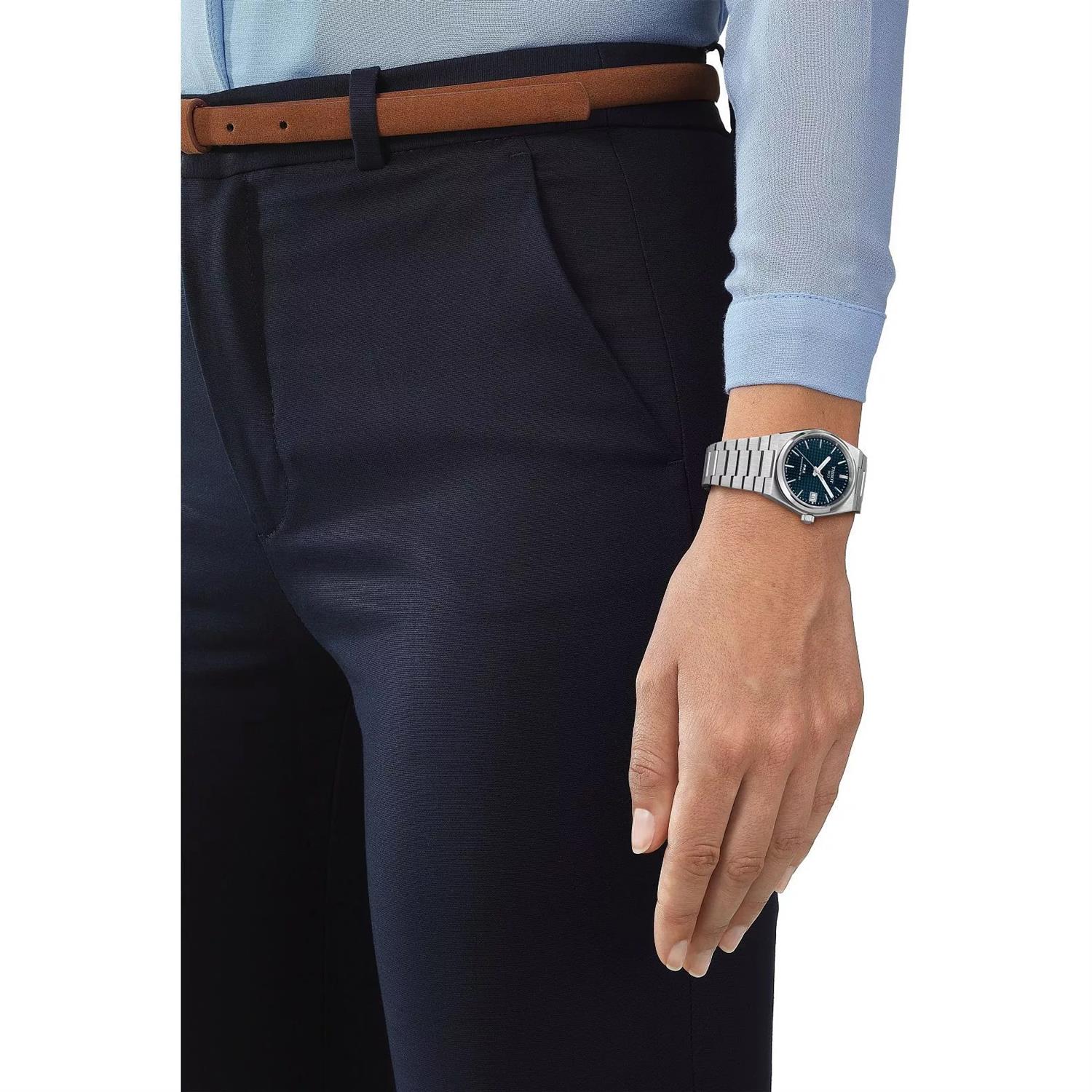 ساعت مچی زنانه TISSOT با طراحی اسپرت بند استیل با قاب گرد استیل و صفحه گرد سرمه ای با شیشه ضد خراش و ضد انعکاس و قابلیت داشتن تقویم وشب نما و موتوراتوماتیک سوییسی با انرژی مکانیکی و مقاوم در برابر آب تا عمق 100 متر به همراه گارانتی بین المللی