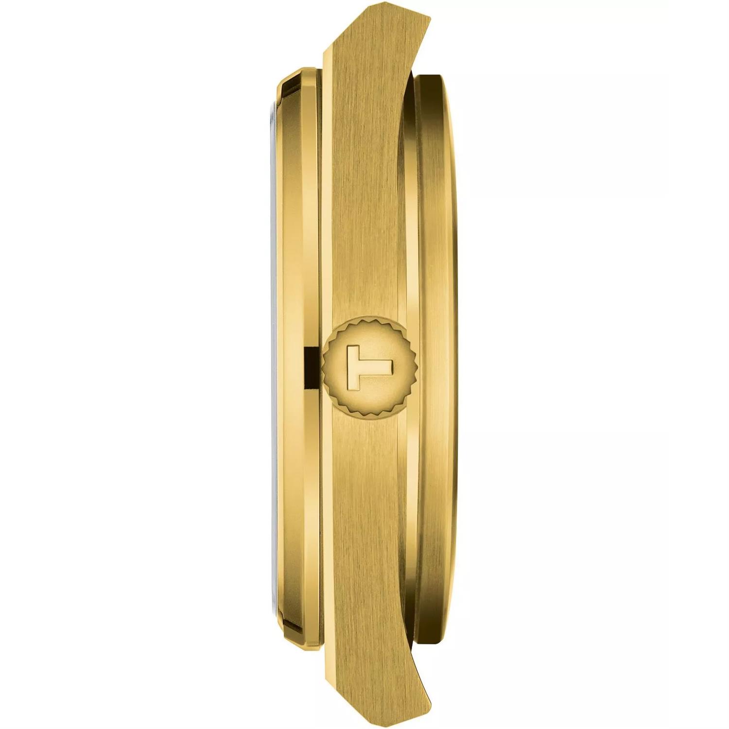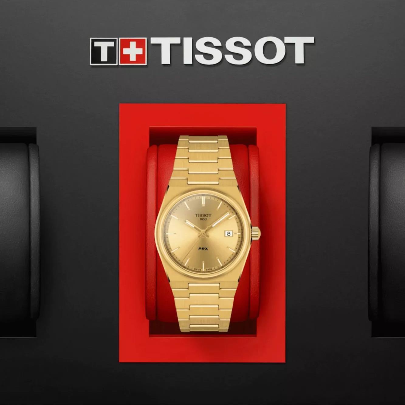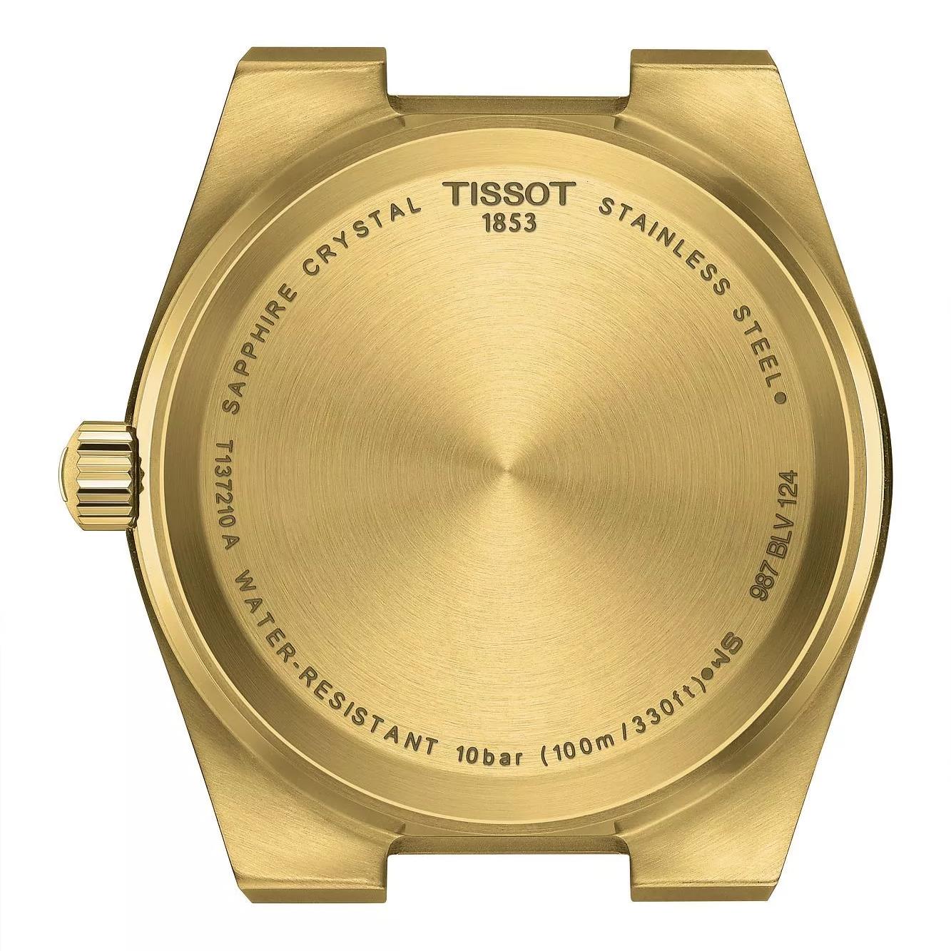 ساعت مچی زنانه TISSOT با طراحی اسپرت بند فلزی طلایی با قاب گرد فلزی طلایی و صفحه گرد طلایی با شیشه ضد خراش وقابلیت داشتن تقویم وشب نما و موتور سوییسی با انرژی باتری و مقاوم در برابر آب تا عمق 100 متر به همراه گارانتی بین المللی