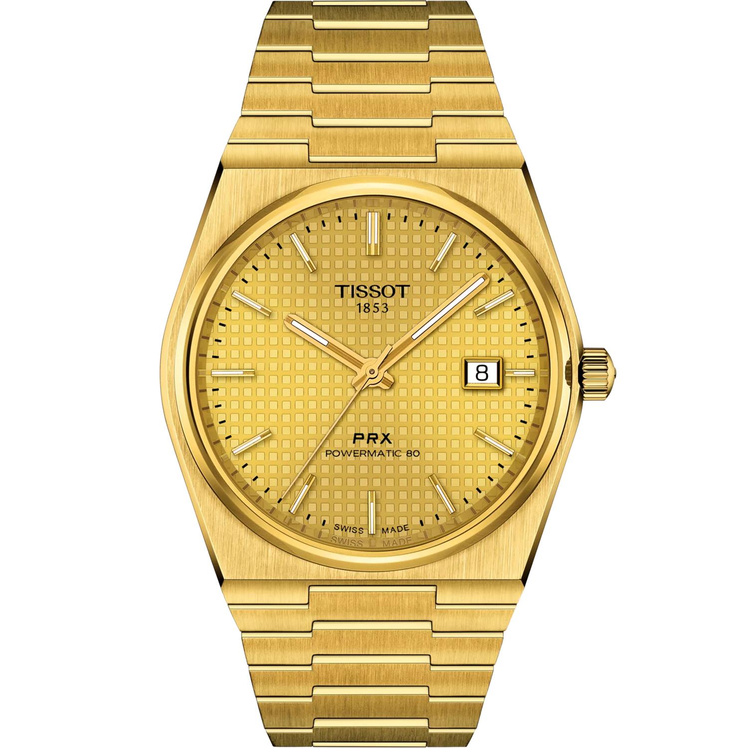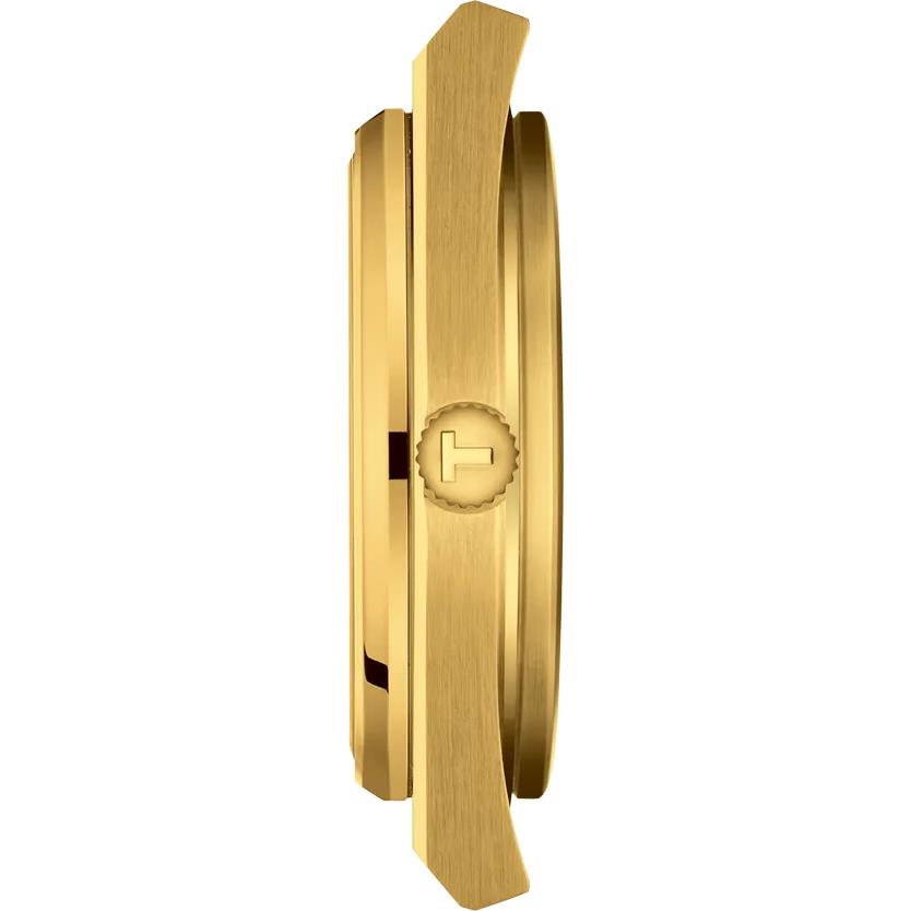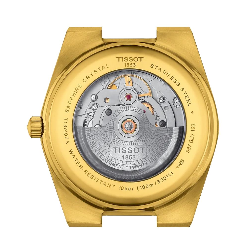 ساعت مچی مردانه TISSOT با طراحی روزانه بند فلزی طلایی و قاب گرد طلایی با صفحه گرد طلایی و قابلیت داشتن تقویم / شب نما و شیشه ضد خراش و ضد انعکاس نور با موتوراتوماتیک سوییسی و انرژی مکانیکی و مقاوم در برابر آب تا عمق 100 متر به همراه گارانتی بین المللی