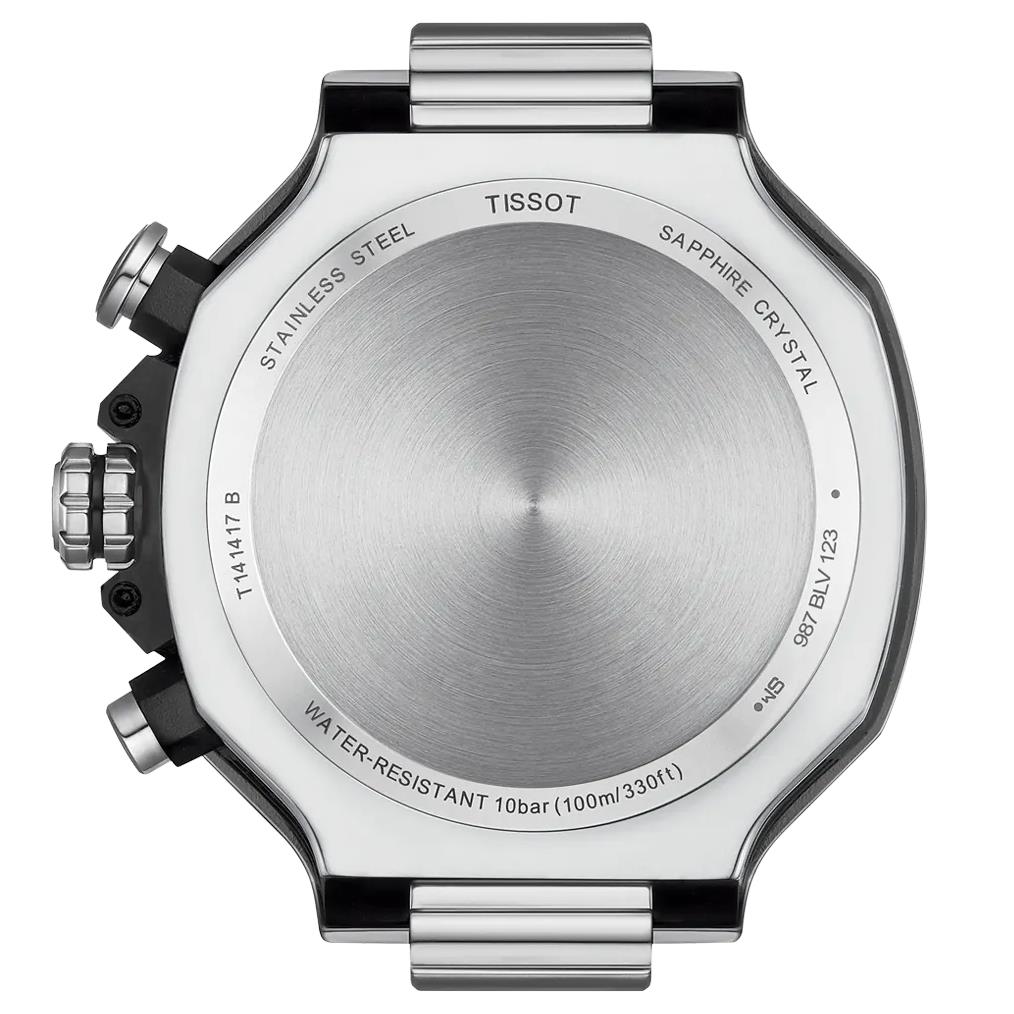 ساعت مچی مردانه TISSOT با طراحی اسپرت بند استیل با قاب متفاوت استیل و صفحه گرد سفید با شیشه ضد خراش و ضد انعکاس نور و قابلیت داشتن تقویم / کرنوگراف/ زه تاچی متر/ شب نما و موتور سوییسی با انرژی  باتری و مقاوم در برابر آب تا عمق 100 متر به همراه گارانتی بین المللی