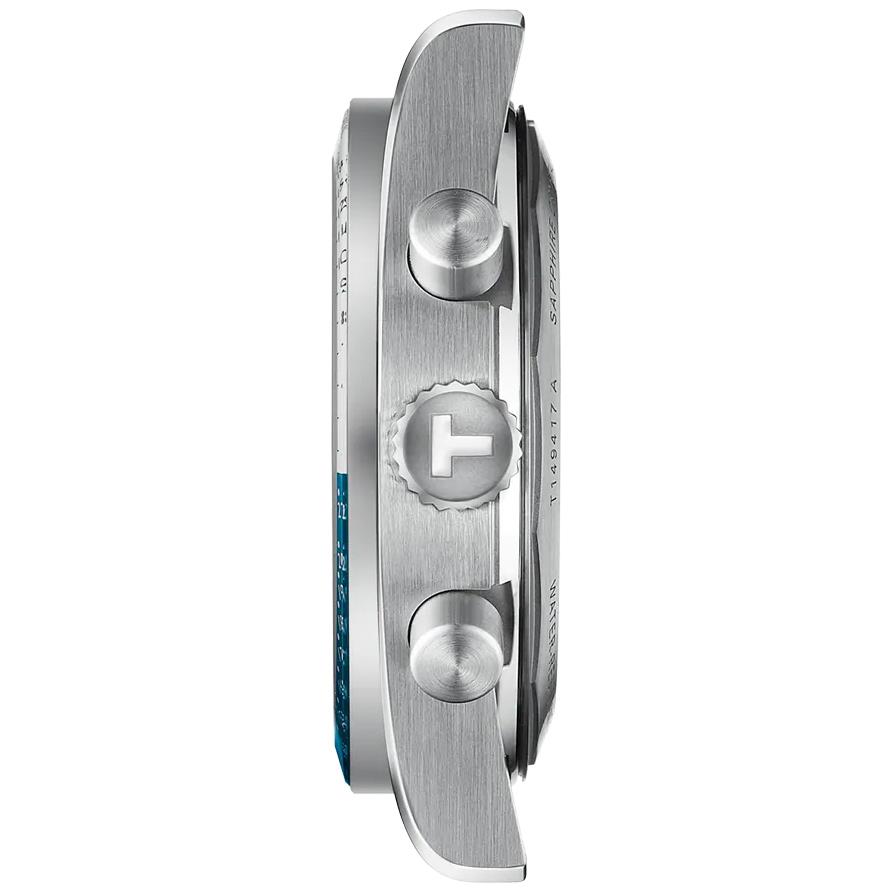 ساعت مچی مردانه TISSOT با طراحی اسپرت بند استیل با قاب گرد استیل سرمه ای و صفحه گرد سرمه ای با شیشه ضد خراش و قابلیت داشتن کرنوگراف/ زه تاچی متر/ شب نما و موتور سوییسی با انرژی  باتری و مقاوم در برابر آب تا عمق 100 متر به همراه گارانتی بین المللی