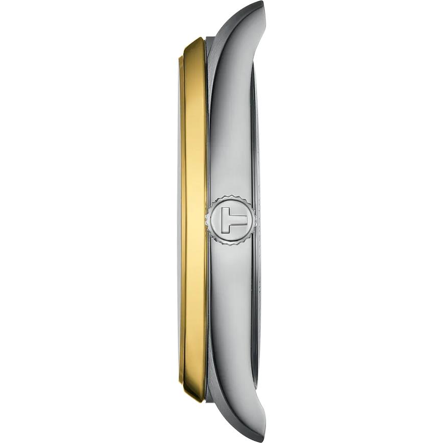 ساعت مچی مردانه TISSOT با طراحی روزانه بند استیل طلایی و قاب گرد طلایی استیل با صفحه گرد سرمه ای و شیشه ضد خراش با موتور سوییسی با قابلیت تقویم / شب نما و انرژی باطری و مقاوم در برابر آب تا عمق 100 متر به همراه گارانتی بین المللی