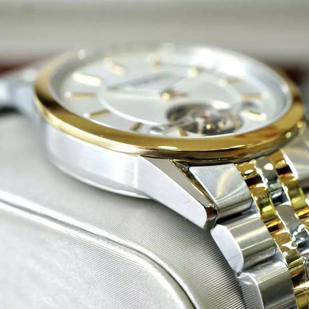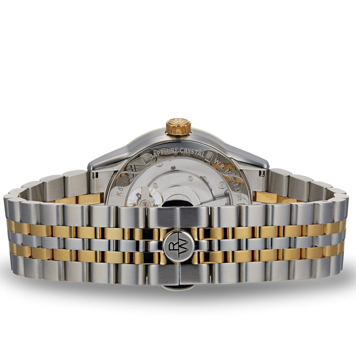 ساعت مچی مردانه ریموند ویل Raymon Weil با طراحی روزانه بند استیل طلایی و قاب گرد طلایی استیل و صفحه  قلب بازه نقره ای با شیشه ضد خراش و قابلیت داشتن شب نما و موتور اتوماتیک سوییسی با انرژی مکانیکی و مقاوم در برابر آب تا عمق 100 متر به همراه گارانتی بین الملی