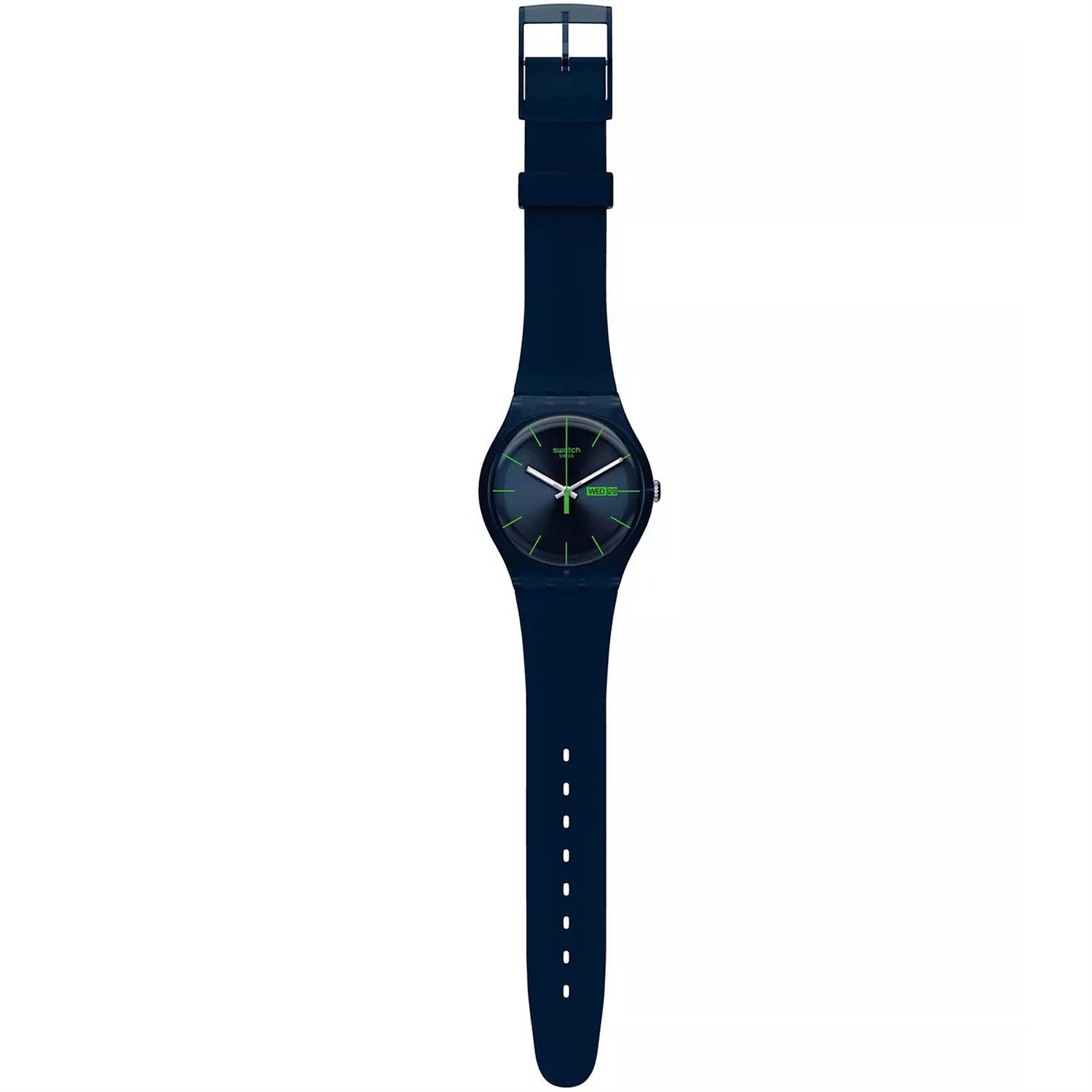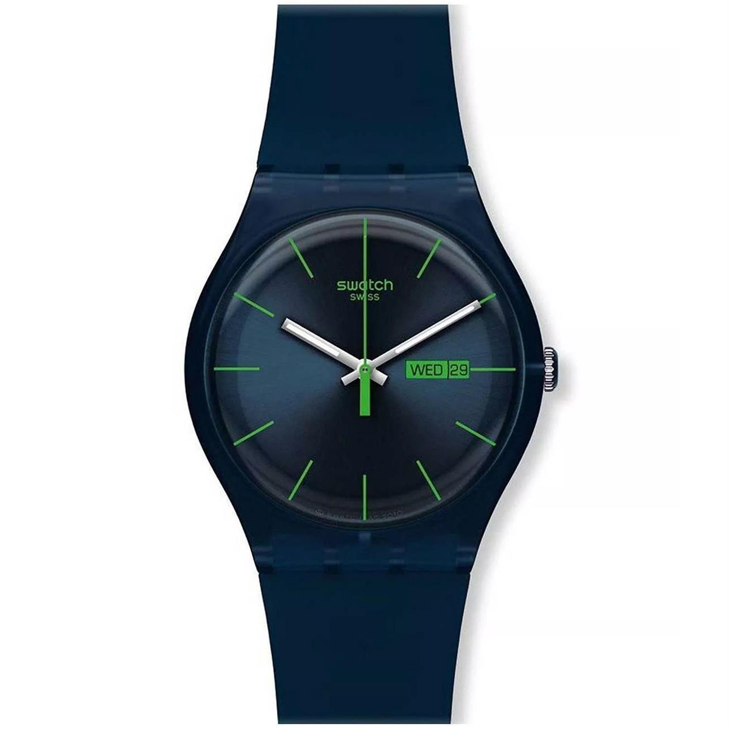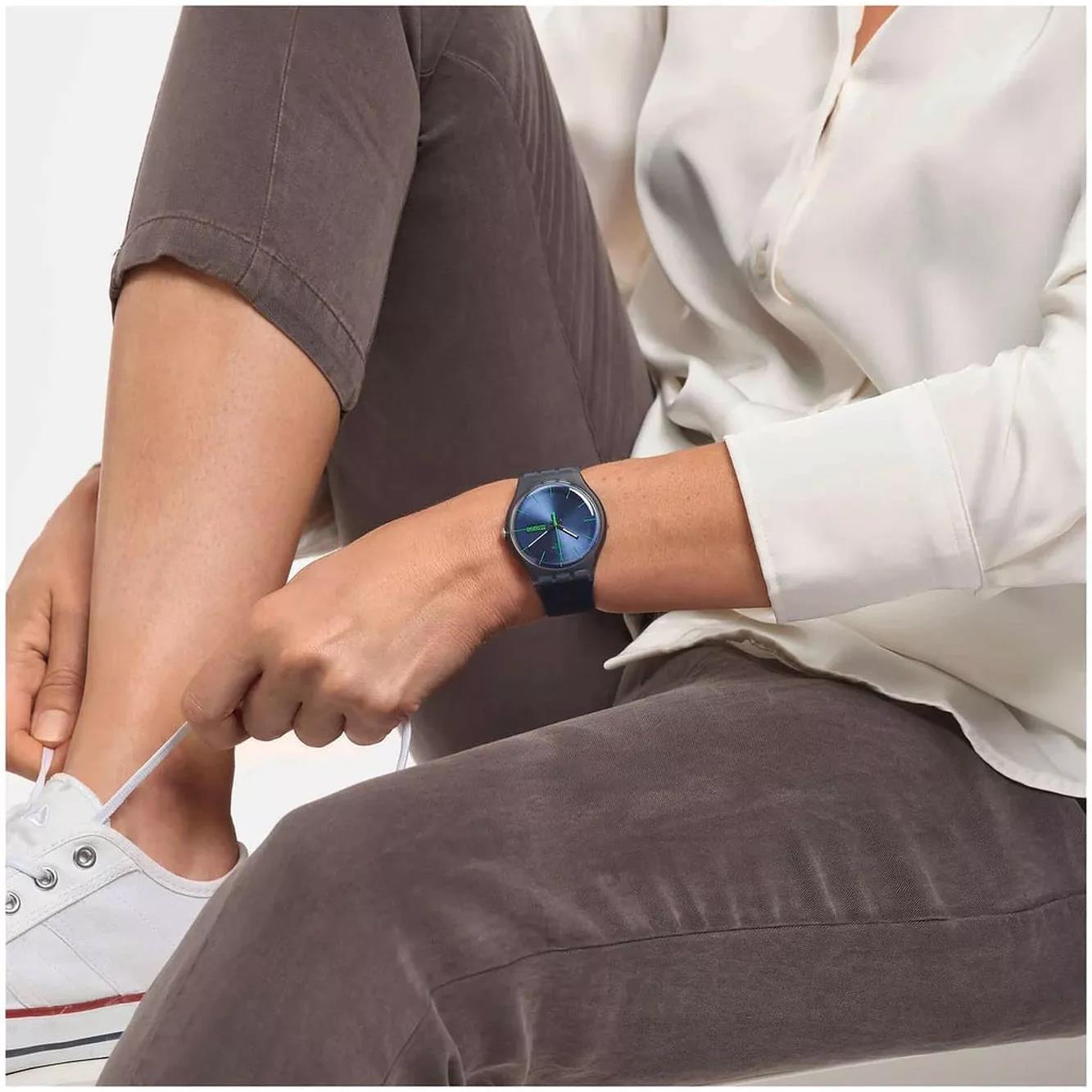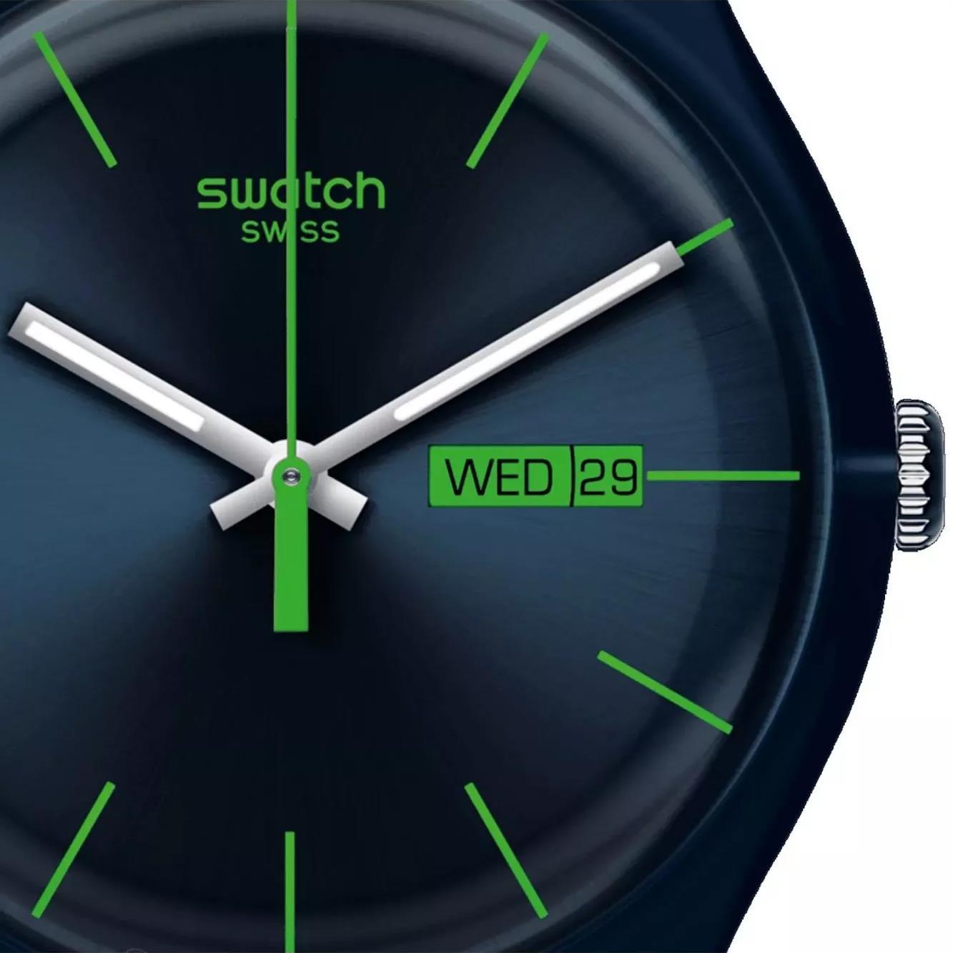 ساعت مچی مردانه سواچ SWATCH با طراحی روزانه بند سیلیکونی سرمه ای و قاب گرد سرمه ای و صفحه گرد سرمه ای و موتور سوییسی با انرژی باتری و قابلیت داشتن  شبنما / تقویم / کرنوگراف و مقاوم در برابر آب تا عمق 30 متر به همراه دو سال گارانتی بین المللی