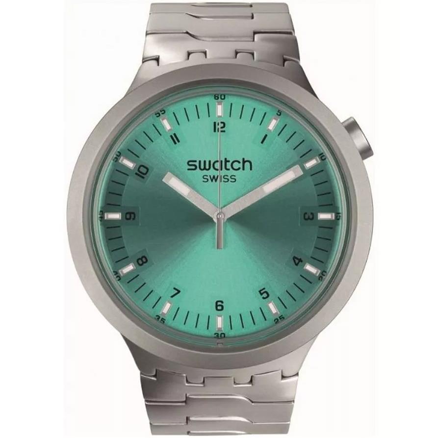 ساعت مچی مردانه سواچ SWATCH با طراحی روزانه بند استیل و قاب گرد استیل و صفحه گرد آبی و موتور سوییسی با انرژی باتری و قابلیت داشتن شبنما و مقاوم در برابر آب تا عمق 30 متر به همراه دو سال گارانتی بین المللی