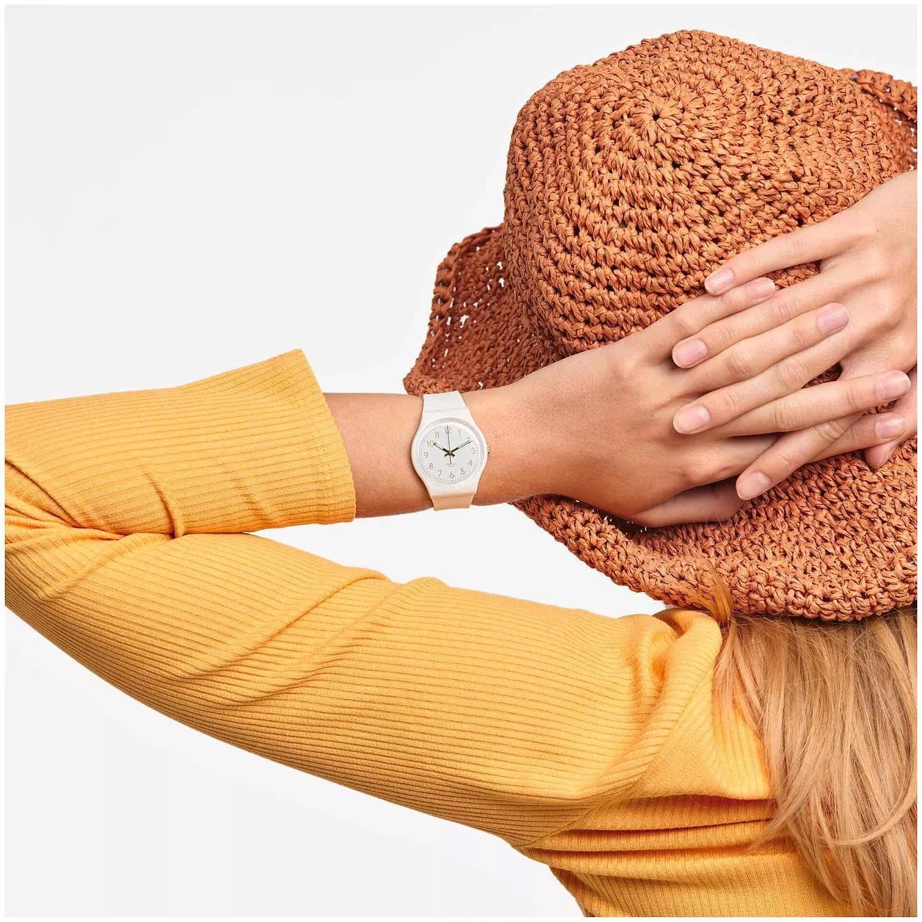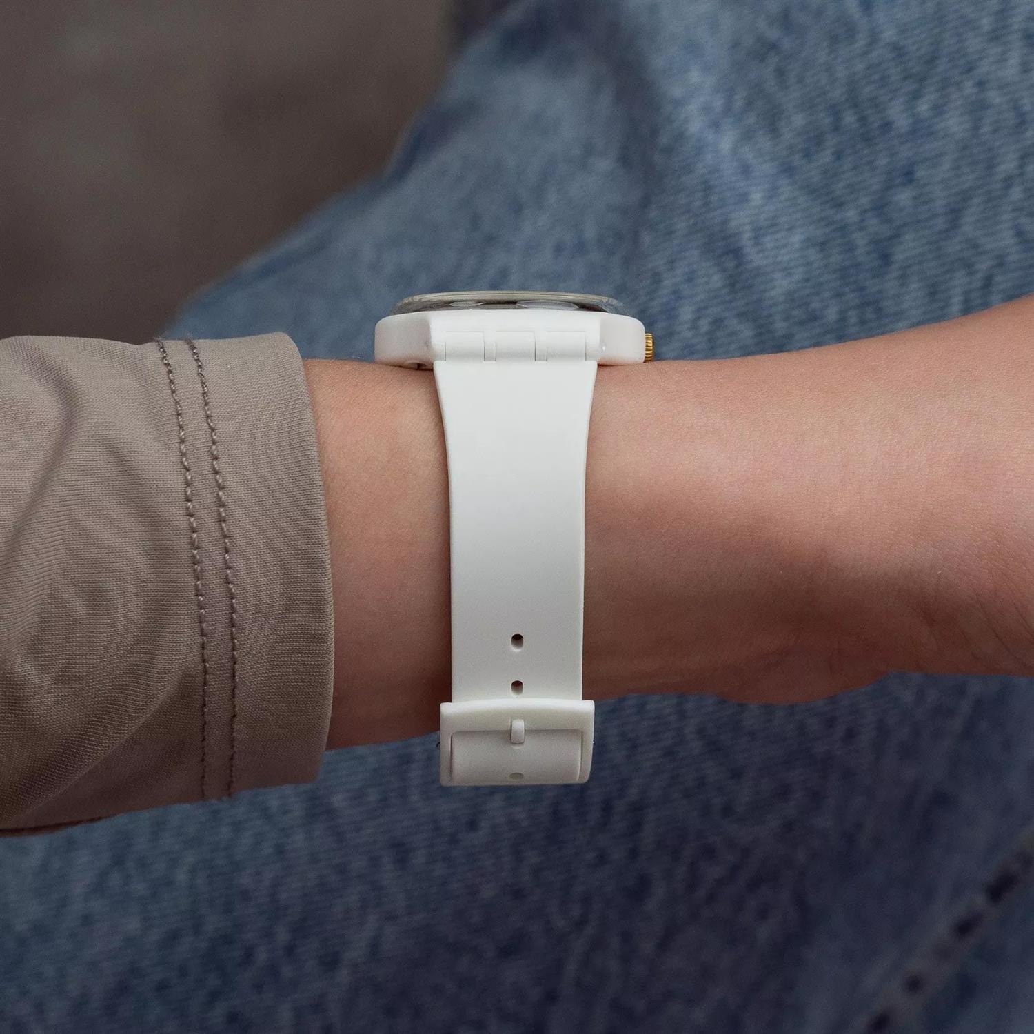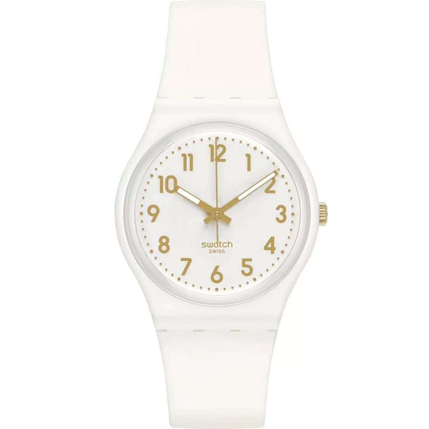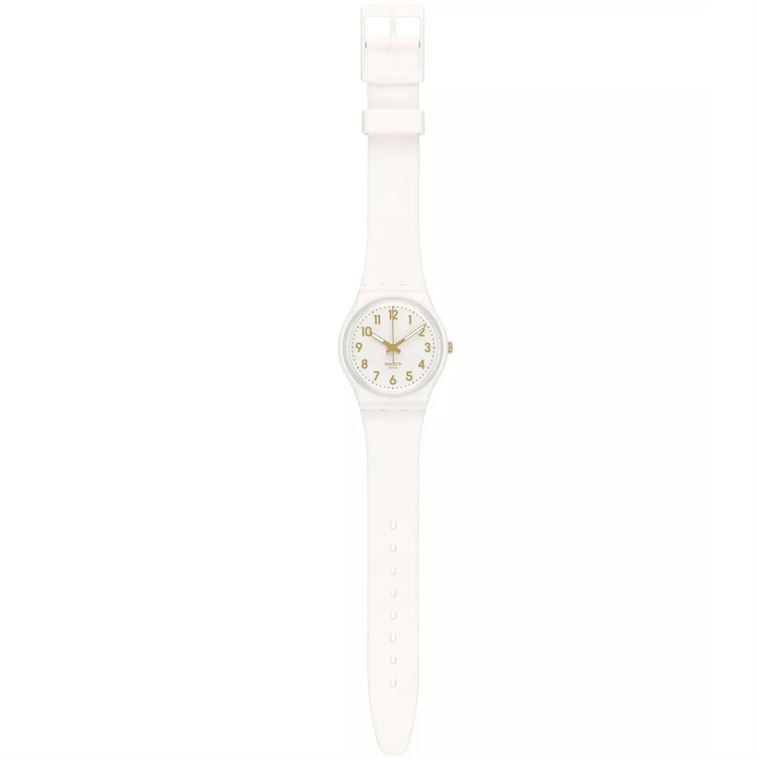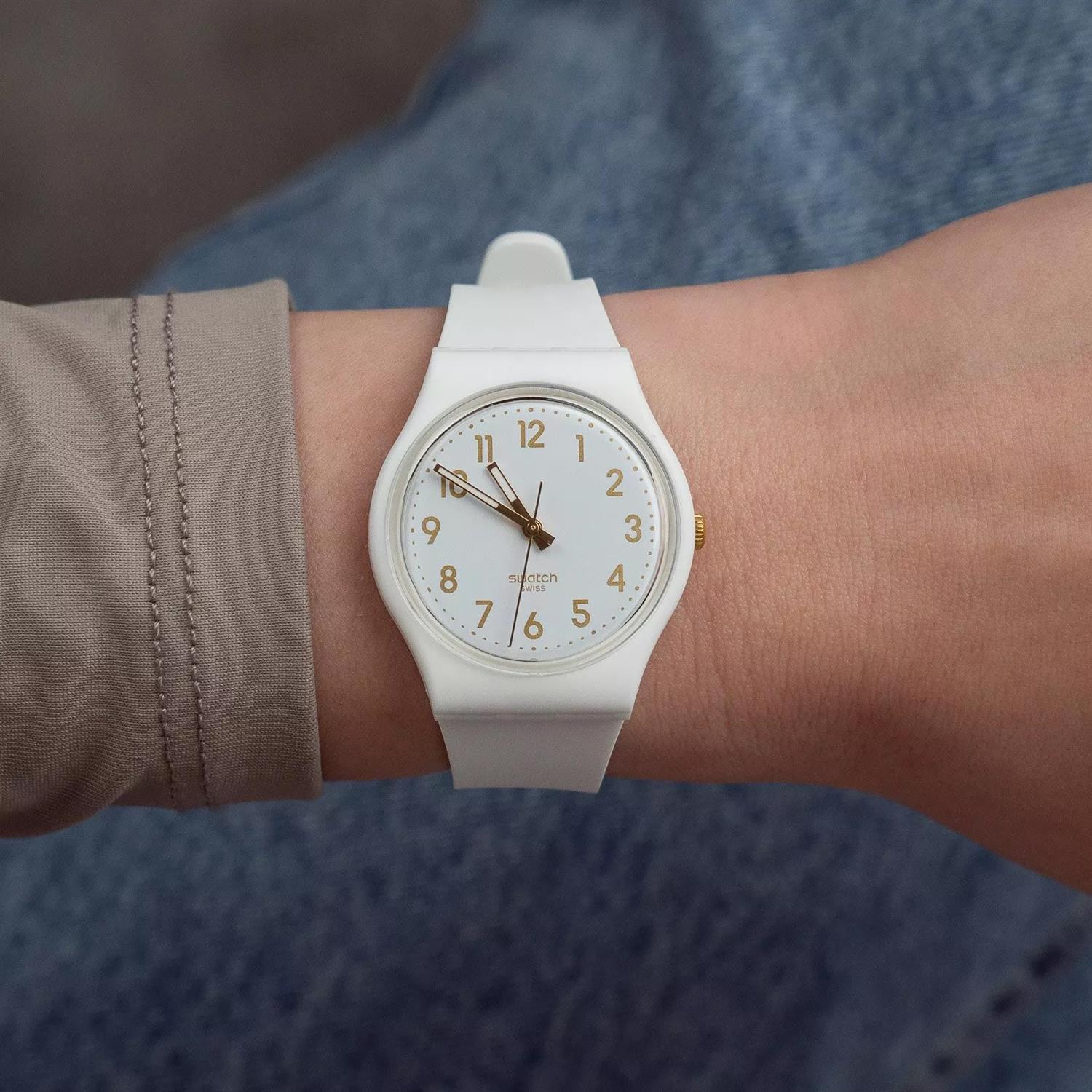 ساعت مچی زنانه سواچ SWATCH با طراحی روزانه بند سیلیکونی سفید و قاب گرد سفید و صفحه گرد سفید با موتور سوییسی و انرژی باتری با قابلیت داشتن شب نما و مقاوم در برابر آب تا عمق 30 متر به همراه دو سال گارانتی بین المللی