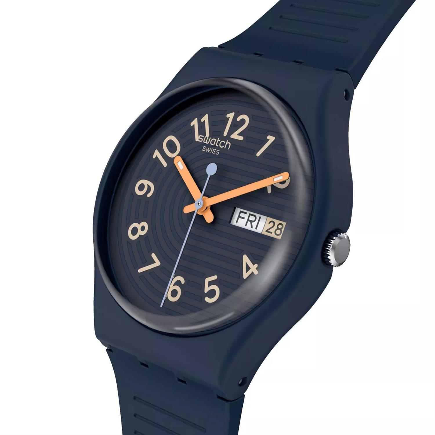 ساعت مچی دخترانه سواچ SWATCH با طراحی روزانه بند سیلیکونی سرمه ای و قاب گرد سرمه ای و صفحه گرد سرمه ای با موتور سوییسی و انرژی باتری با قابلیت داشتن  شب نما / روزهای هفته/ تقویم و مقاوم در برابر آب تا عمق 30 متر به همراه دو سال گارانتی بین المللی