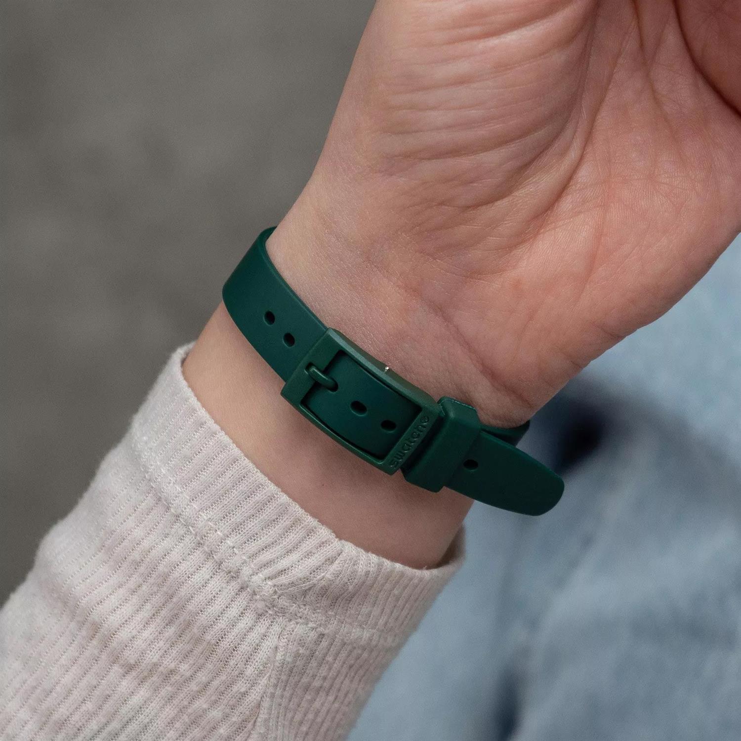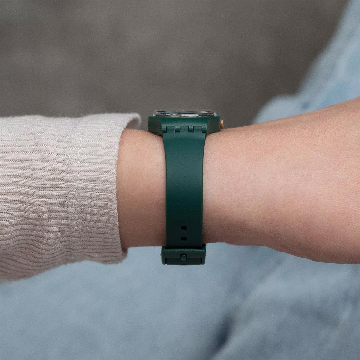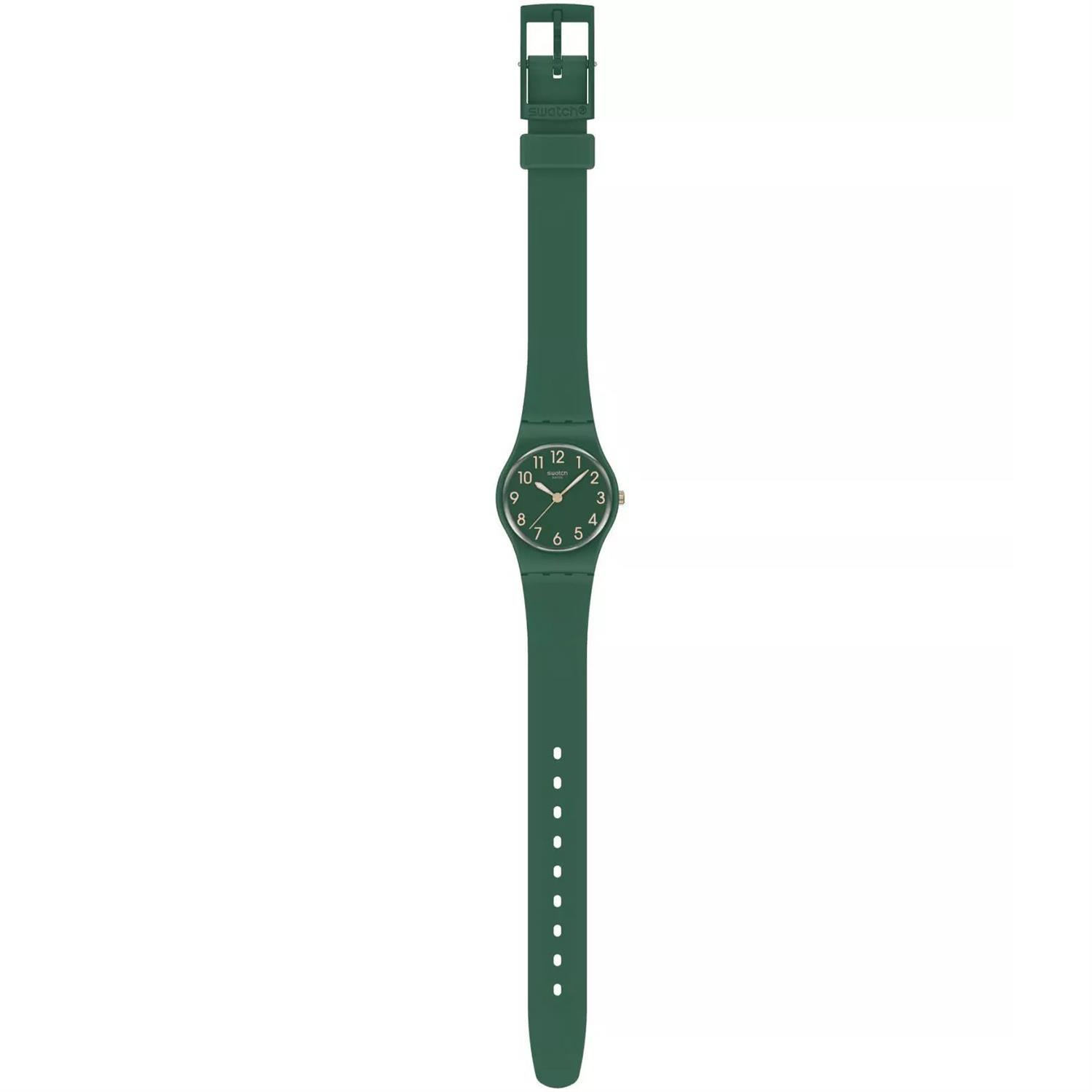 ساعت مچی زنانه سواچ swatch با طراحی روزانه بند سیلیکونی سبز و قاب گرد سبز با صفحه گرد سبز و قابلیت داشتن شب نما و موتور سوییسی با انرژی باطری و مقاوم در برابر آب تا عمق 30 متر به همراه گارانتی بین المللی