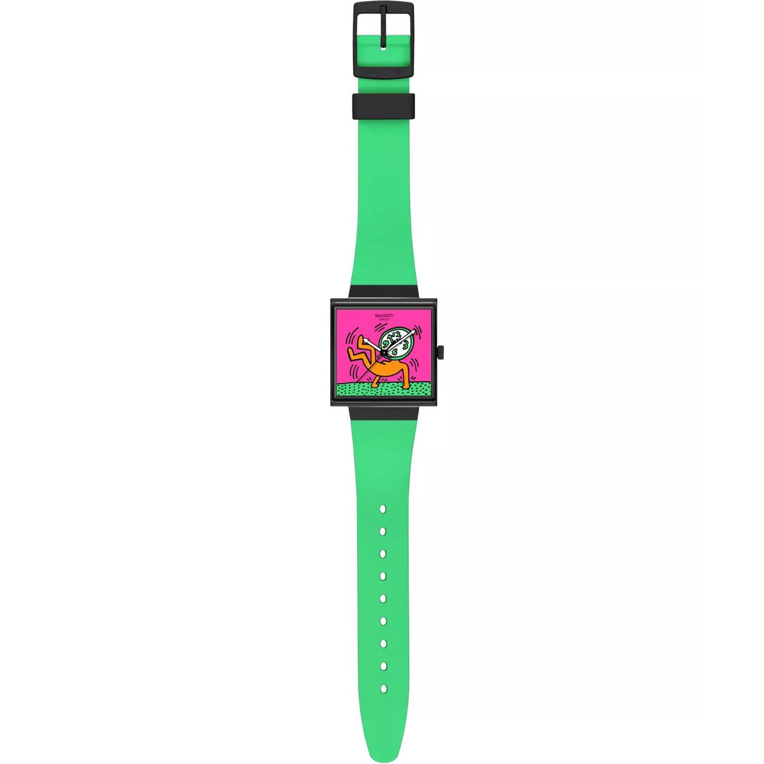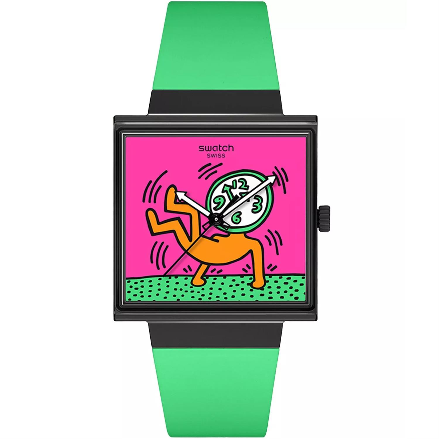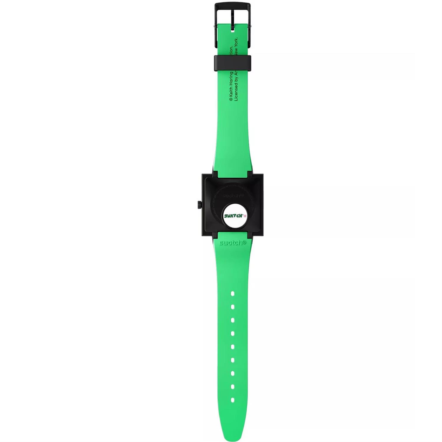 ساعت مچی دخترانه سواچ SWATCH با طراحی روزانه بند سیلیکونی سبز و قاب مربعی مشکی و صفحه چند رنگ با قابلیت داشتن شب نما و موتور سوییسی و انرژی باتری و مقاوم در برابر آب تا عمق 30 متر به همراه دو سال گارانتی بین المللی
