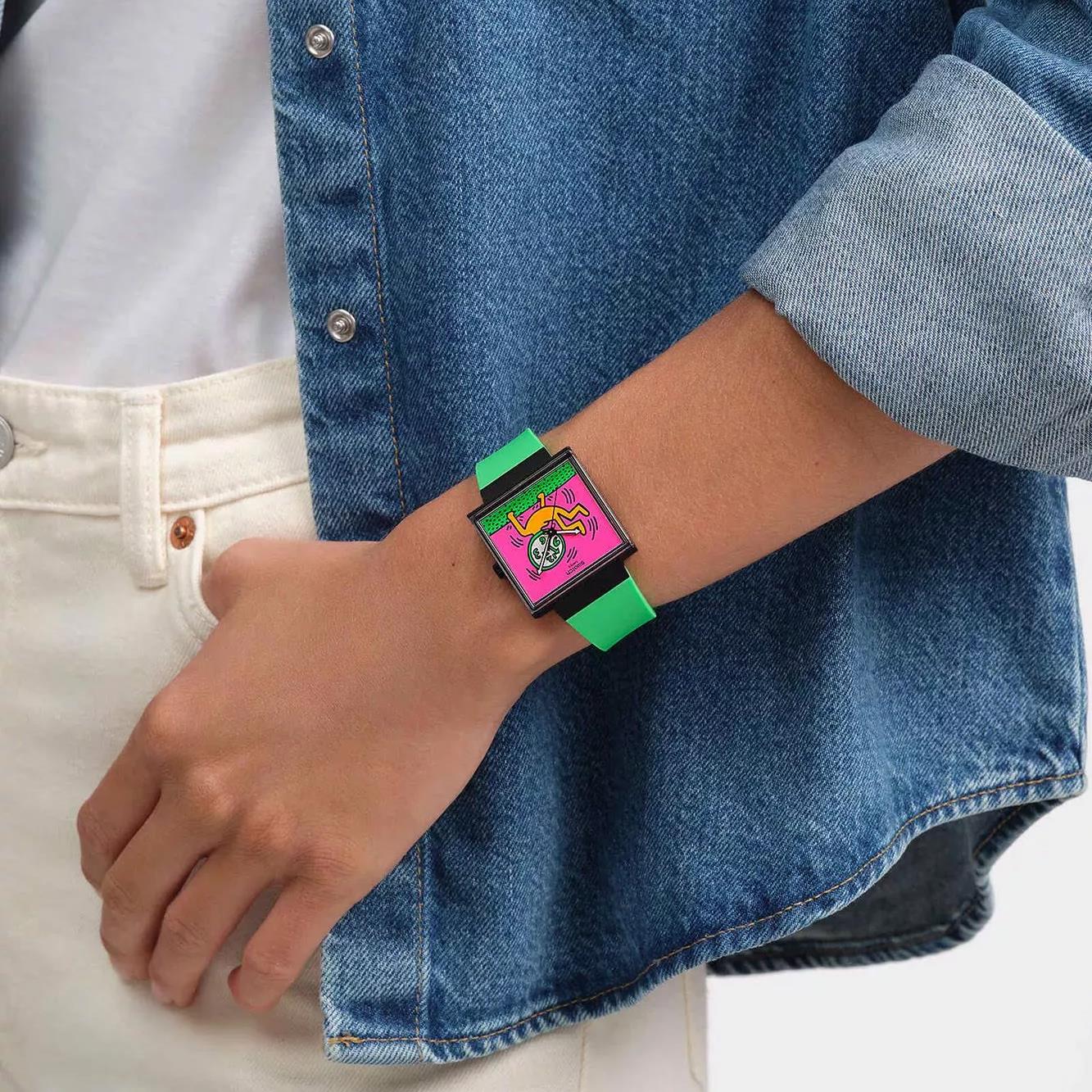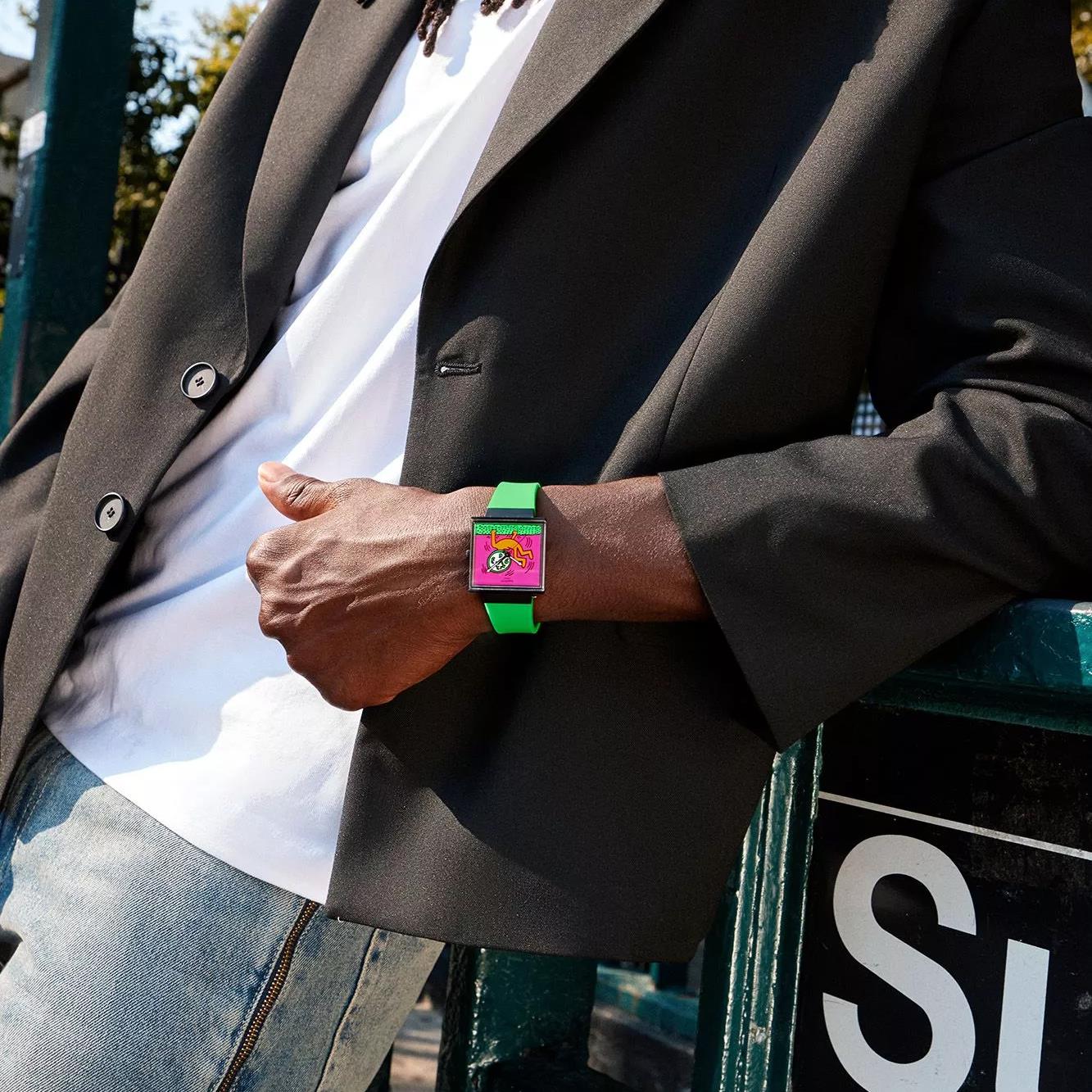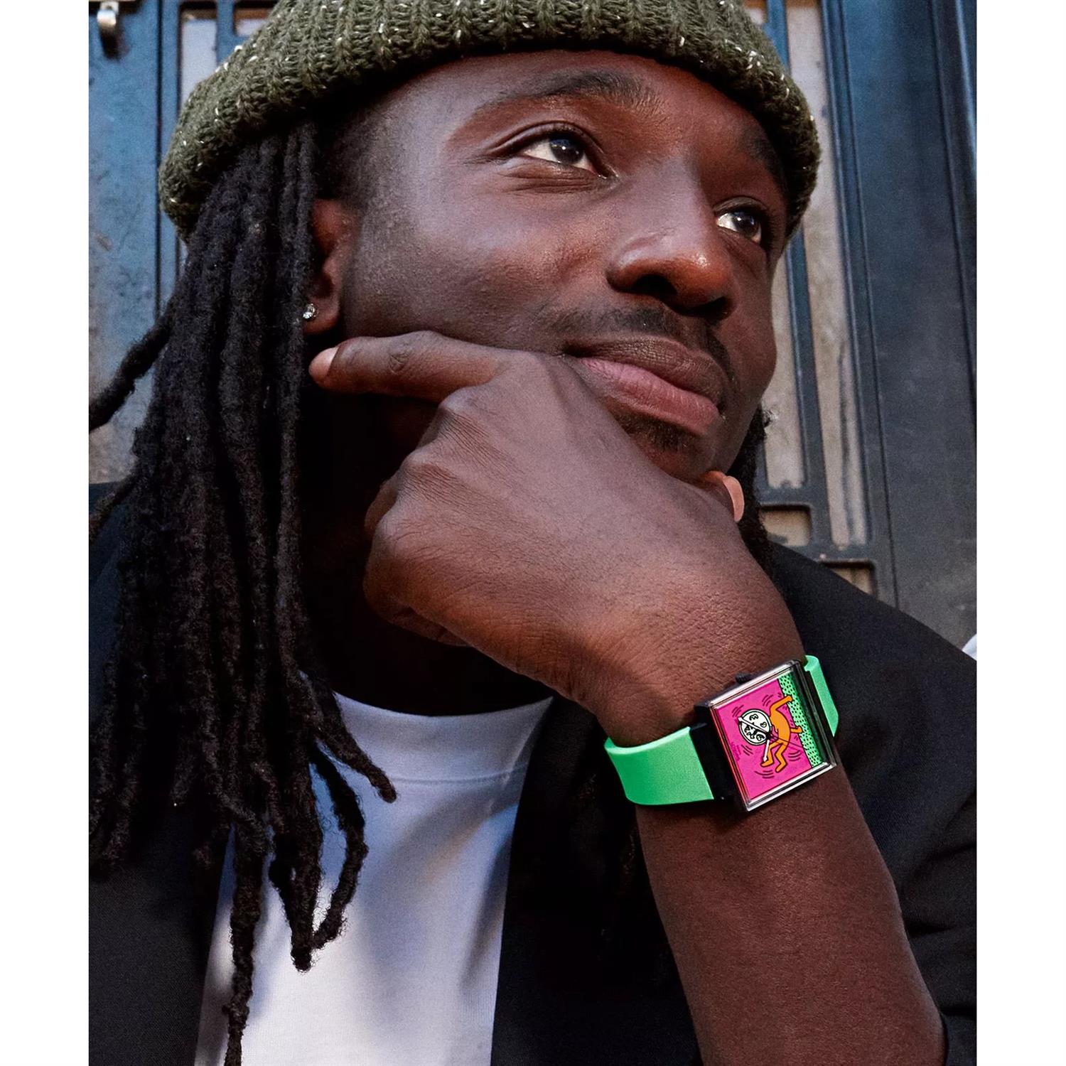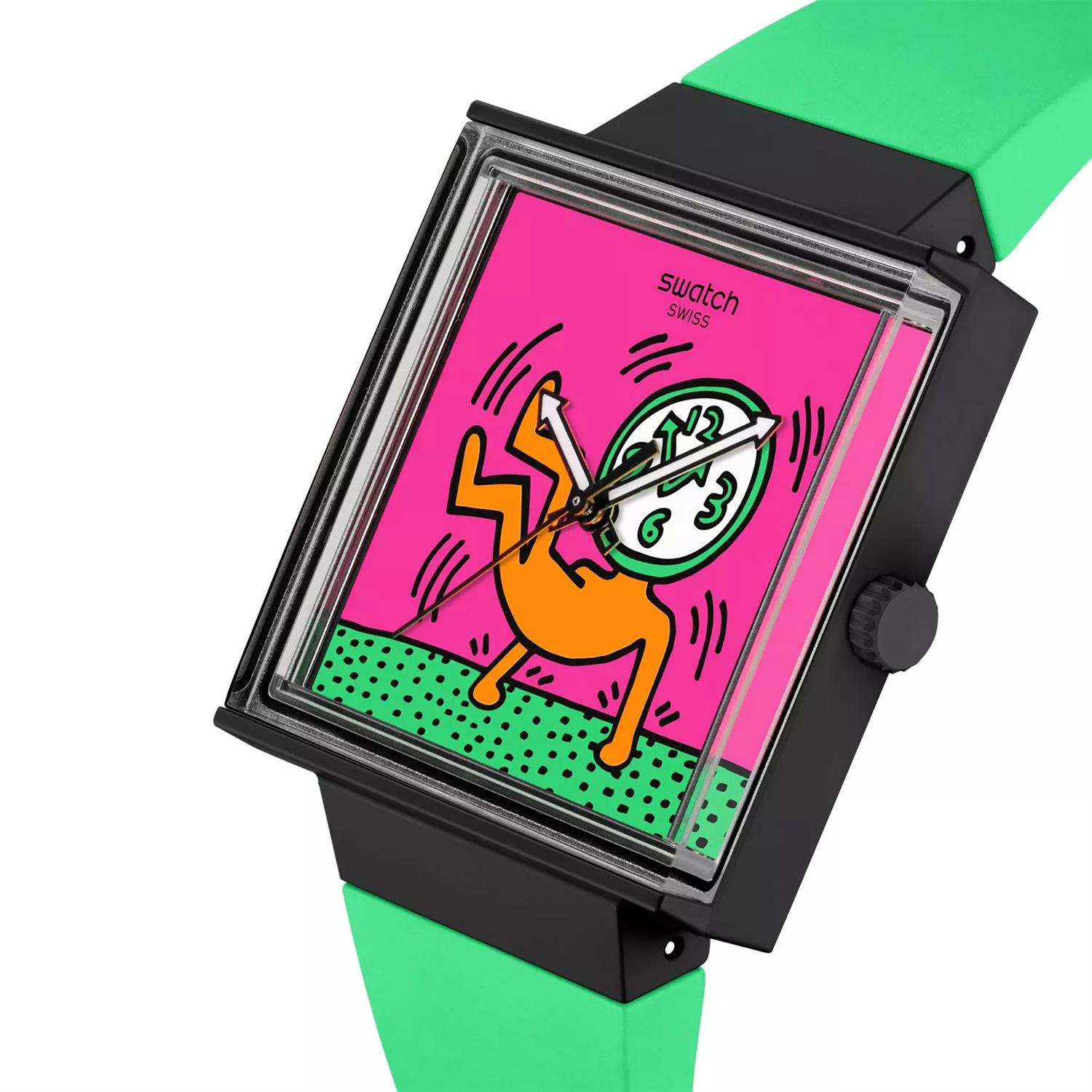 ساعت مچی دخترانه سواچ SWATCH با طراحی روزانه بند سیلیکونی سبز و قاب مربعی مشکی و صفحه چند رنگ با قابلیت داشتن شب نما و موتور سوییسی و انرژی باتری و مقاوم در برابر آب تا عمق 30 متر به همراه دو سال گارانتی بین المللی