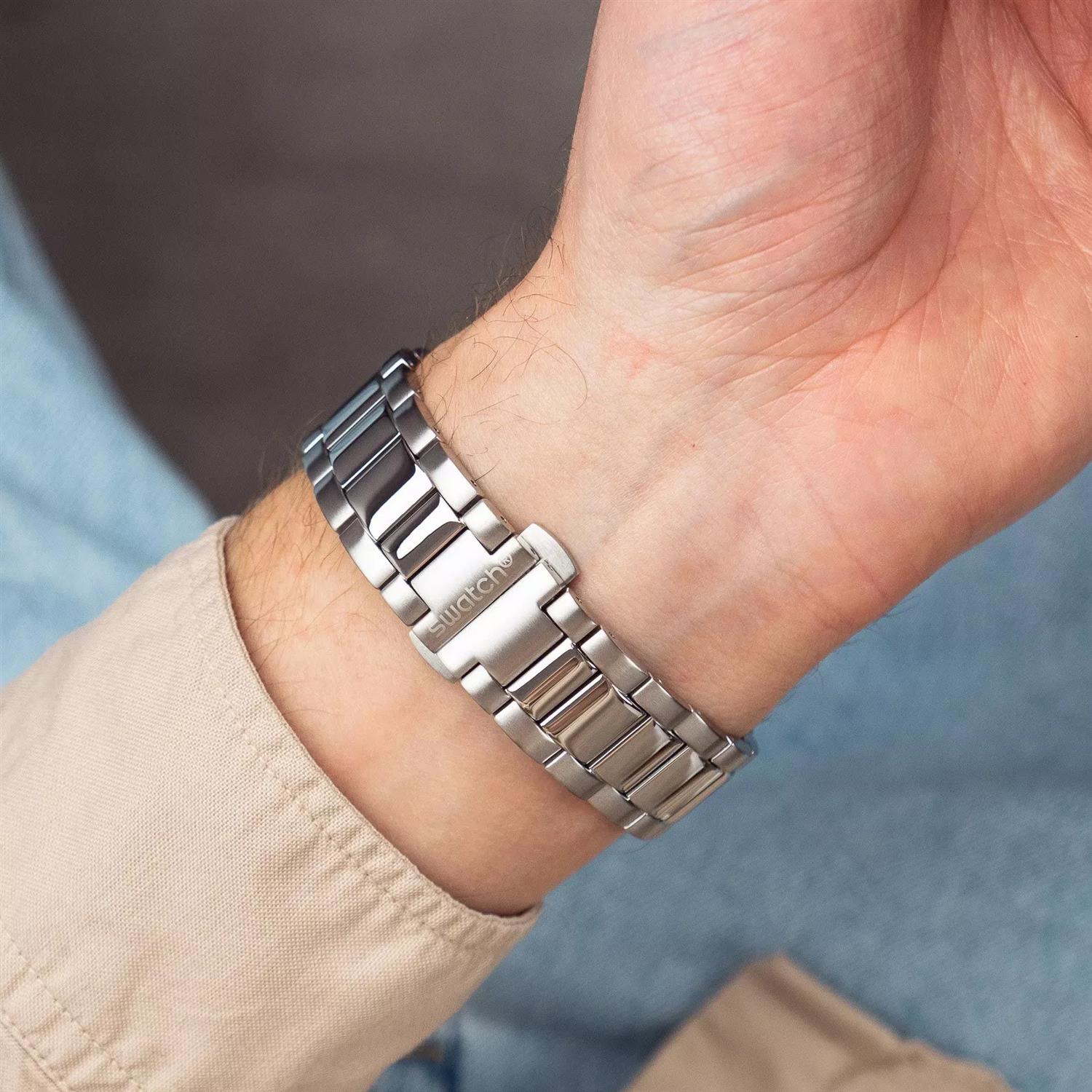 Swatch YIS435G برای آنهایی است که ساعتی میخواهند با ترکیب طراحی مدرن و کیفیت ساخت قابلاعتماد؛ ساعتی که بتواند هم به تیپ روزمرهشان شخصیتی امروزی بدهد و هم در محیط کاری یا رسمی ساده و شیک باشد. این ساعت با موتور خودکار، بند فلزی مقاوم، قاب 42 میلیمتر و طراحی آبی چشمنواز، انتخابی عالی برای مردانی است که دنبال ساعتی همهکاره، خوشساخت و با ظاهری بهروز هستند — ساعتی برای هر روز و هر شرایط.