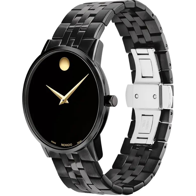 ساعت مچی مردانه موادو MOVADO با طراحی روزانه بند فلزی مشکی و قاب فلزی مشکی و صفحه گرد مشکی با شیشه ضد خراش و موتور سوییسی با انرژی باتری و مقاوم در برابر آب تا عمق 30 متر به همراه دو سال گارانتی بین المللی