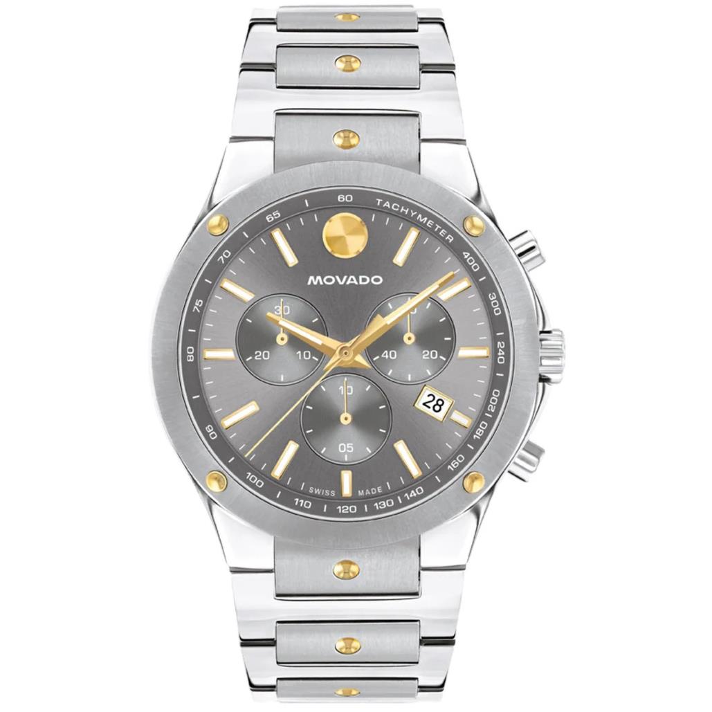 ساعت مچی مردانه موادو MOVADO با طراحی روزانه بند استیل و قاب گرد استیل و صفحه گرد طوسی با قابلیت داشتن تقویم /شب نما/ کرنوگراف /زه تاچی متر و شیشه ضد خراش و موتور سوییسی با انرژی باتری و مقاوم در برابر آب تا عمق 50 متر به همراه دو سال گارانتی بین المللی