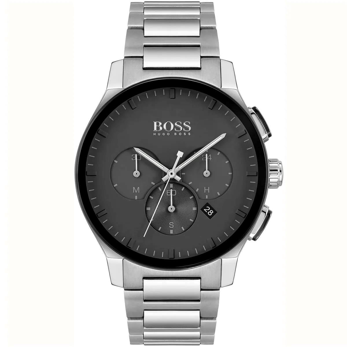 ساعت مچی مردانه هوگوباس Hugo Boss با طراحی روزانه بند استیل با قاب گرد استیل مشکی و صفحه مشکی با قابلیت کرنوگراف تقویم شب نما و موتور ژاپنی با انرژی باتری و مقاوم در برابر آب تا عمق 30 متر به همراه گارانتی بین المللی