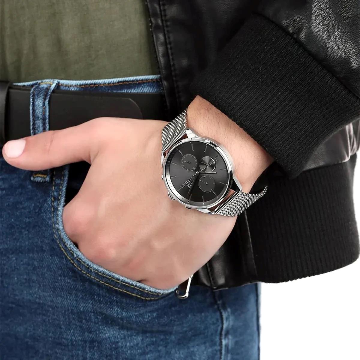ساعت مچی مردانه تامی هیلفیگر Tommy Hilfiger با طراحی روزانه بند حصیر بافت استیل و قاب گرد استیل و صفحه طوسی با قابلیت داشتن تقویم / روزهای هفته و موتور ژاپنی با انرژی باتری و مقاوم در برابر آب تا عمق 50 متر به همراه گارانتی بین المللی