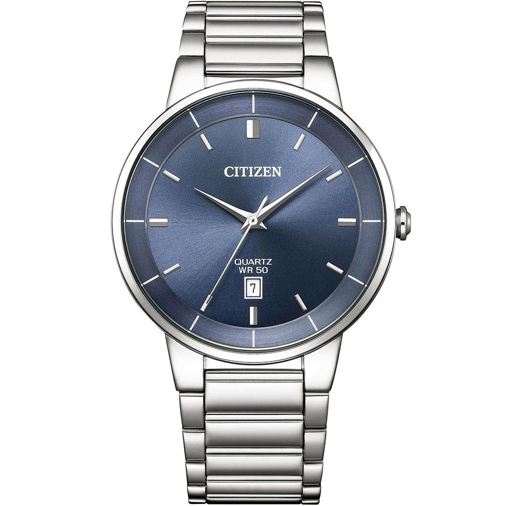 ساعت مچی مردانه سیتیزن citizen با طراحی روزانه بند استیل و قاب استیل و صفحه گرد سرمه ای با قابلیت داشتن تقویم  و موتور ژاپنی با انرژی باتری و مقاومت در برابر آب تا عمق 50 متر به همراه گارانتی بین المللی