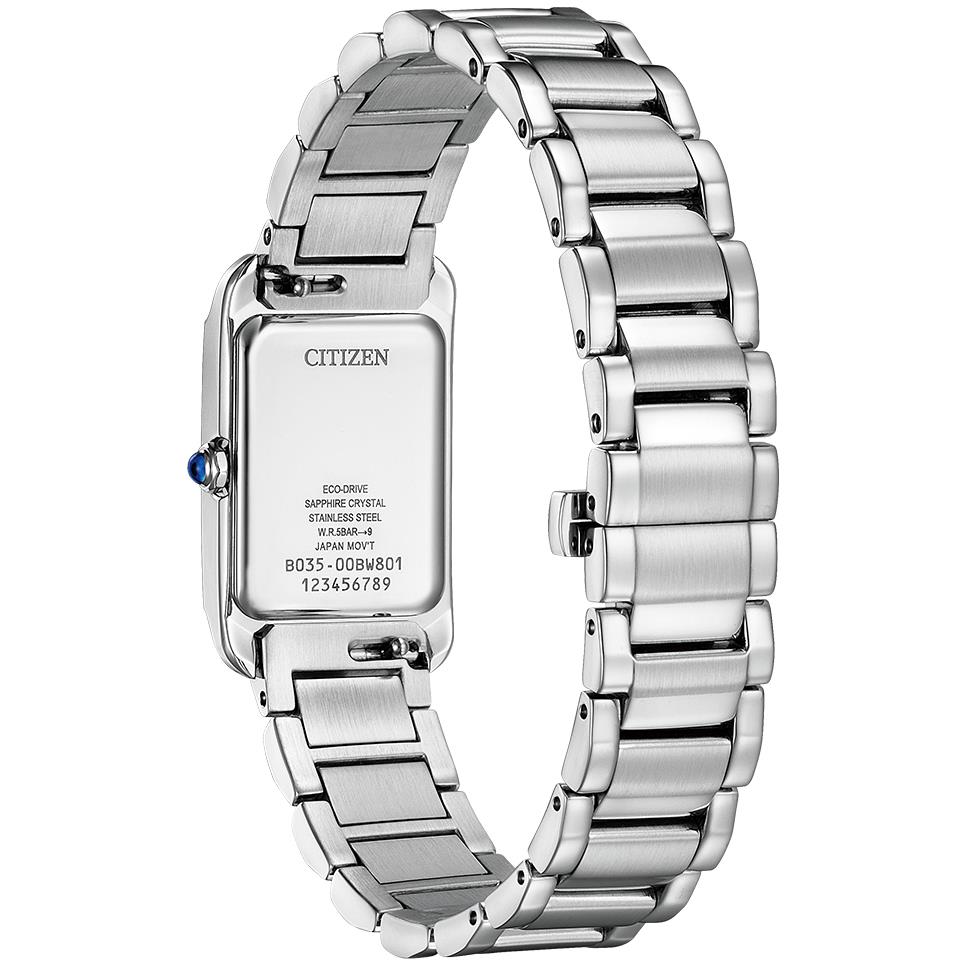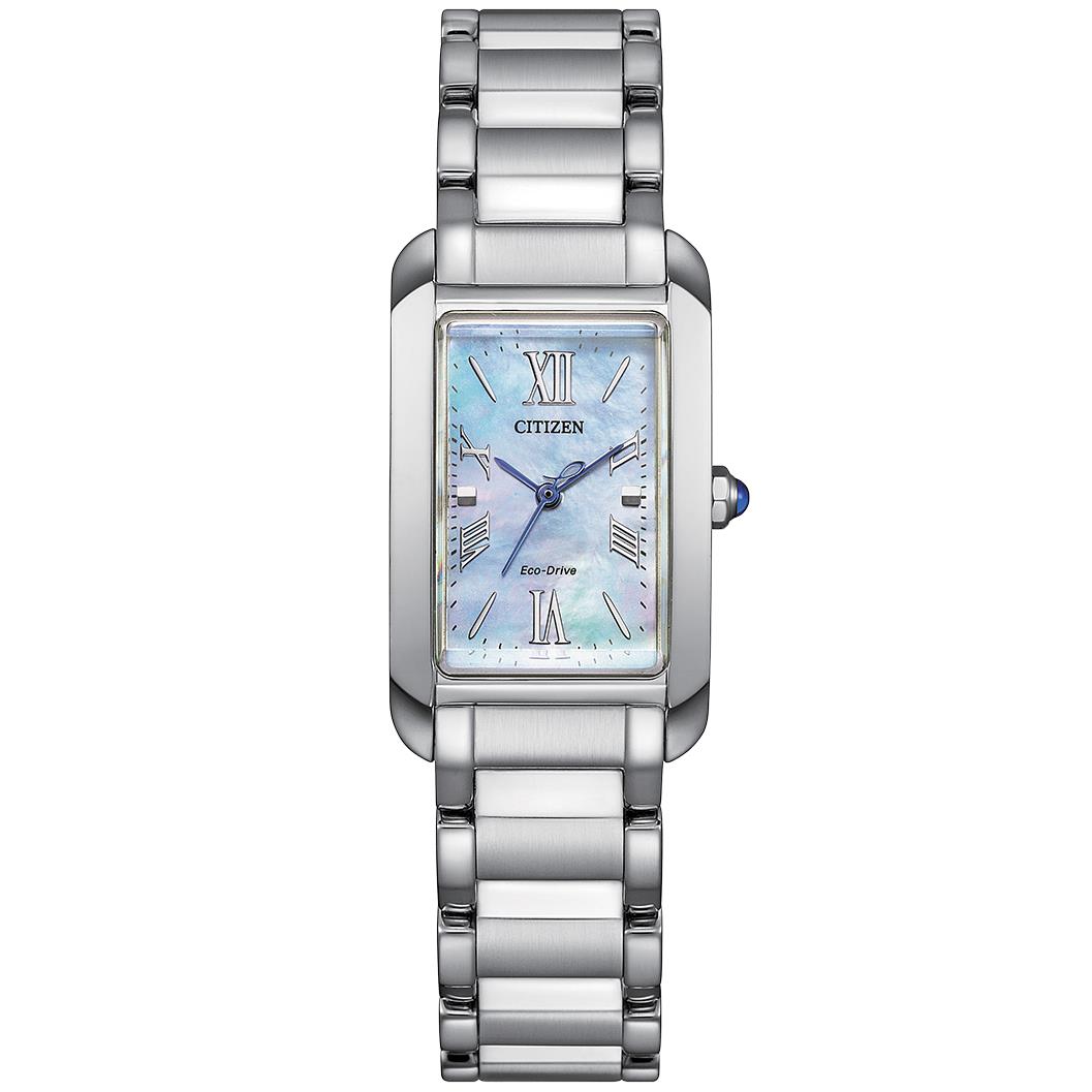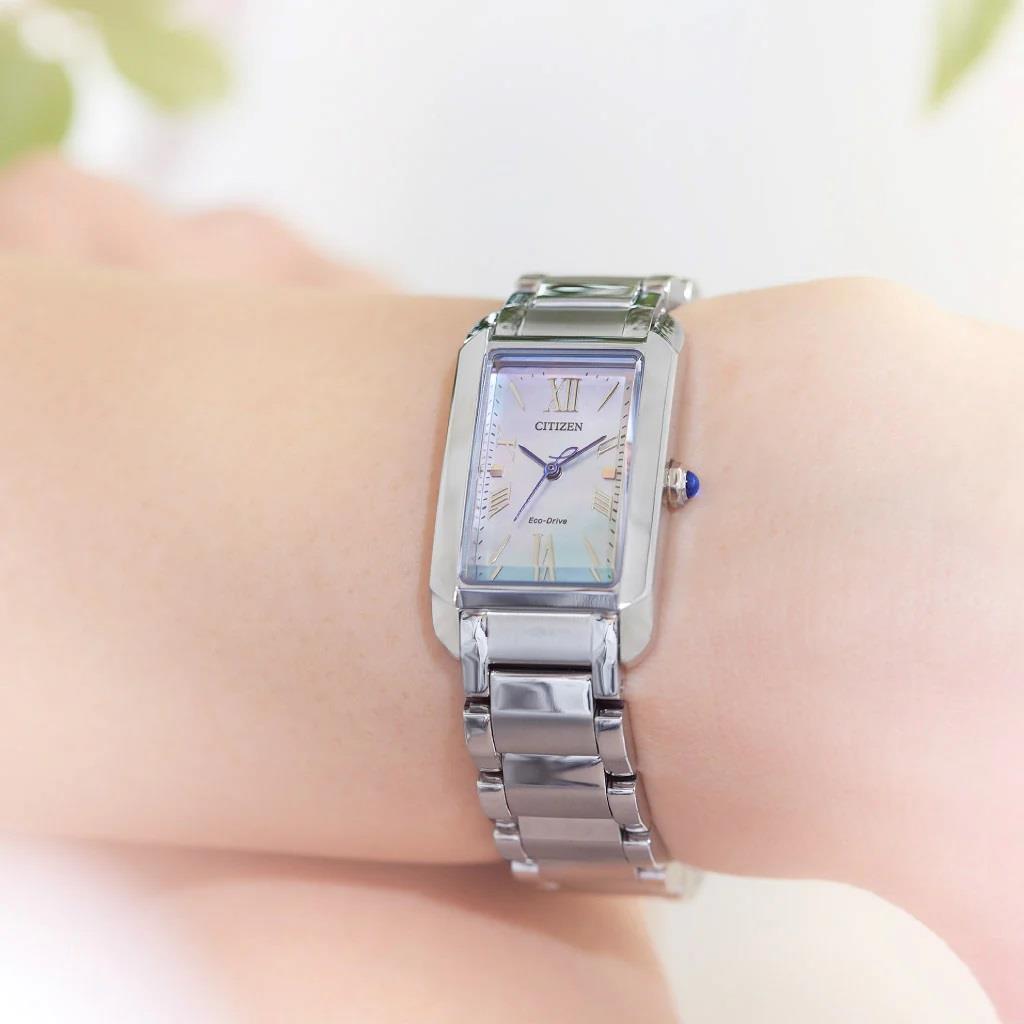 ساعت مچی زنانه سیتیزن citizen با طراحی روزانه بند استیل و قاب استیل و صفحه مستطیلی چند رنگ صدفی با شیشه ضد خراش و موتوراکودرایو ژاپنی و مقاومت در برابر آب تا عمق 50 متر به همراه گارانتی بین المللی