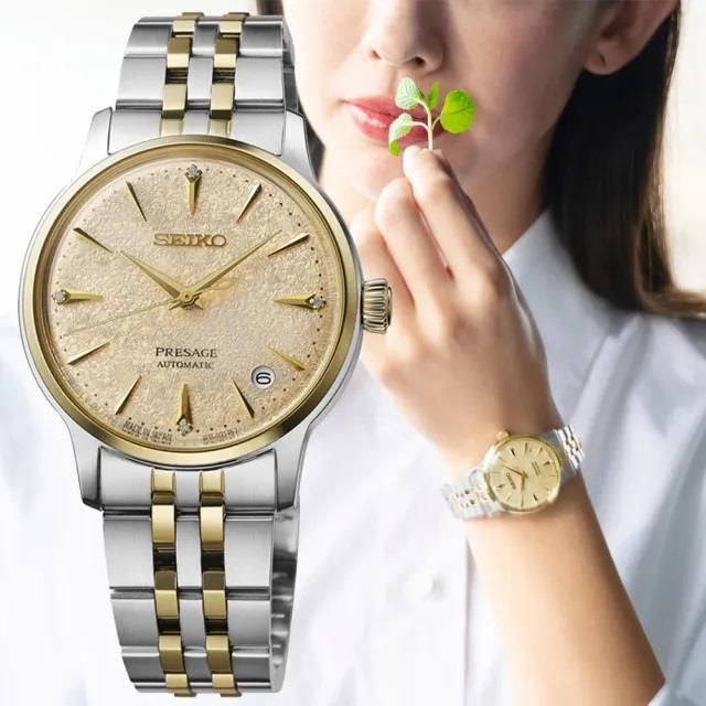ساعت مچی زنانه سیکو seiko با طراحی روزانه بند استیل, قاب گرد دو رنگ و صفحه نگین دار طلایی رنگ با قابلیت داشتن تقویم و موتور اتوماتیک ژاپنی با انرژی مکانیکی و مقاوم در برابر آب تا عمق 50 متر به همراه گارانتی بین المللی