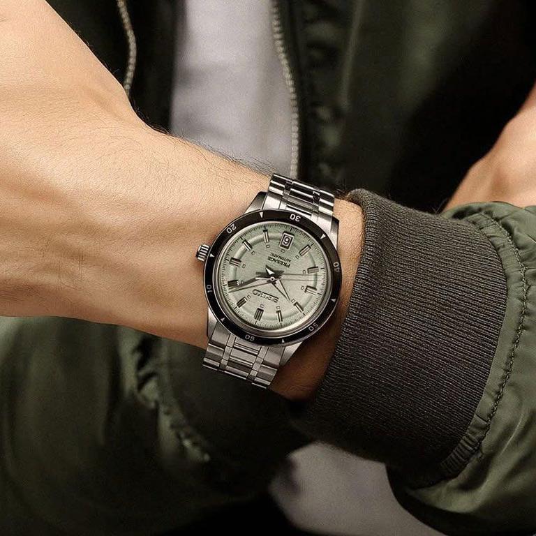 ساعت مچی مردانه سیکو seiko با طراحی روزانه بند استیل, قاب گرد استیل مشکی و صفحه گرد سبز با شیشه ضد خراش و قابلیت داشتن تقویم / شب نما و موتور اتوماتیک ژاپنی با انرژی مکانیکی و مقاوم در برابر آب تا عمق 50 متر به همراه گارانتی بین المللی