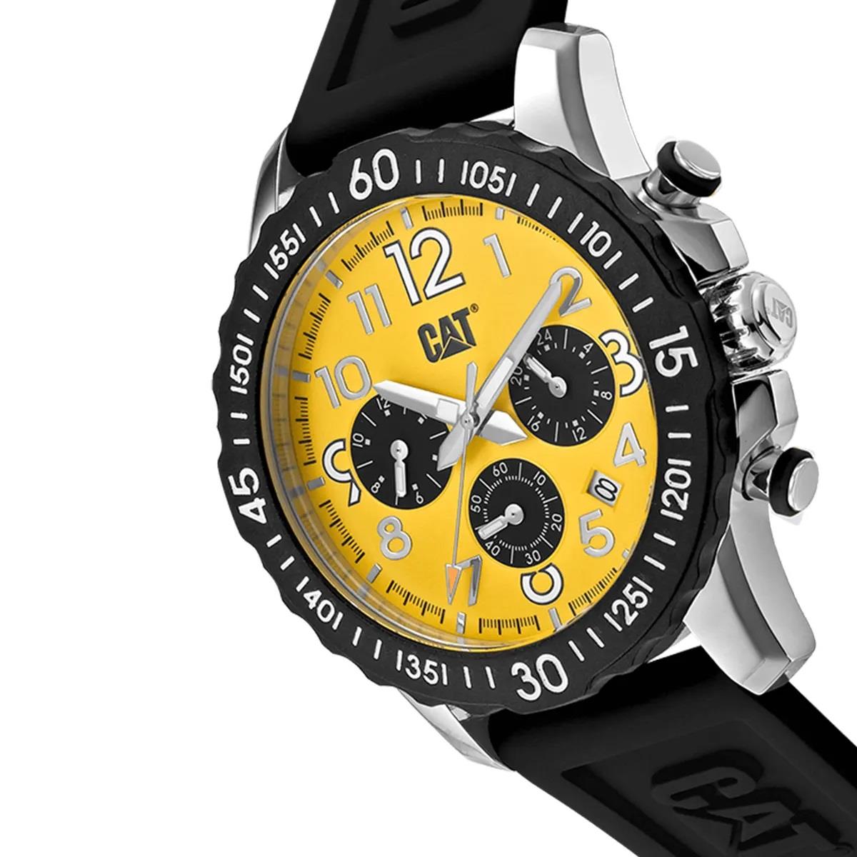 ساعت مچی مردانه کاترپیلار cat با طراحی اسپرت بند سیلیکونی و قاب گرد استیل مشکی و صفحه دو رنگ با نمایشگرعقربه ای و قابلیت داشتن شبنما / کرنوگراف / تقویم / روزوشب با موتور ژاپنی و انرژی باتری و مقاوم در برابر آب تا عمق 100 متر به همراه گارانتی بین المللی