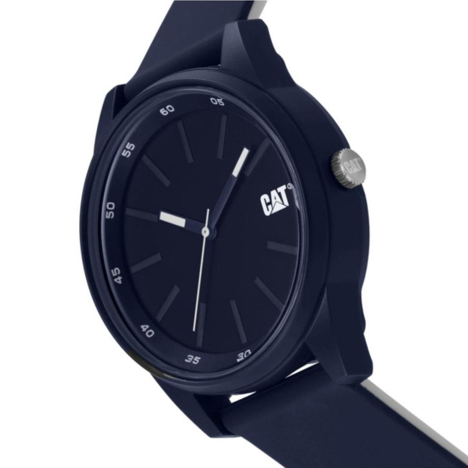 ساعت مچی مردانه کاترپیلار cat با طراحی اسپرت بند سیلیکونی سرمه ای و قاب گرد سرمه ای و صفحه  سرمه ای با نمایشگرعقربه ای و قابلیت داشتن شبنما با موتور ژاپنی و انرژی باتری و مقاوم در برابر آب تا عمق 100 متر به همراه گارانتی بین المللی
