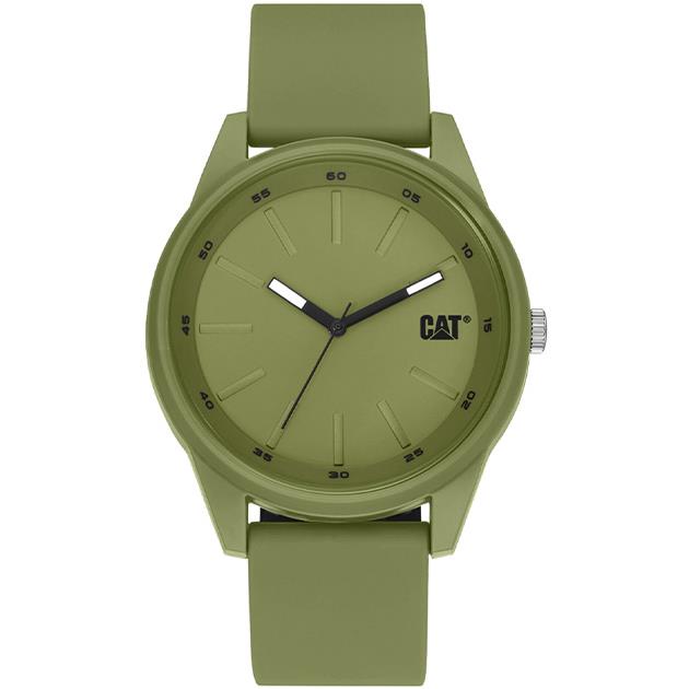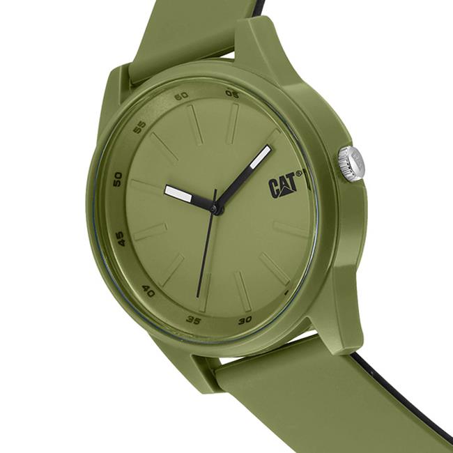 ساعت مچی مردانه کاترپیلار cat با طراحی اسپرت بند سیلیکونی سبز و قاب گرد سبز و صفحه سبز با نمایشگرعقربه ای و قابلیت داشتن شبنما با موتور ژاپنی و انرژی باتری و مقاوم در برابر آب تا عمق 100 متر به همراه گارانتی بین المللی
