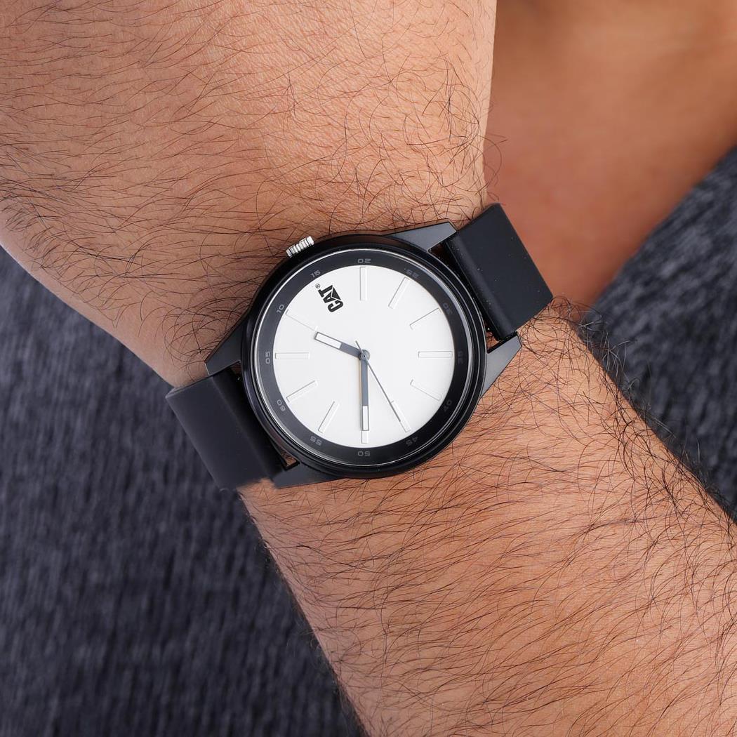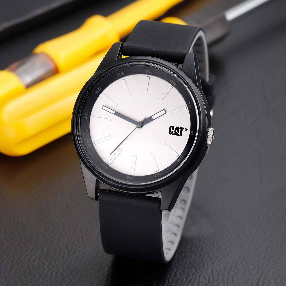 ساعت مچی مردانه کاترپیلار cat با طراحی اسپرت بند سیلیکونی و قاب مشکی و صفحه گرد دورنگ با نمایشگرعقربه ای و قابلیت داشتن شبنما با موتور ژاپنی و انرژی باتری و مقاوم در برابر آب تا عمق 100 متر به همراه گارانتی بین المللی