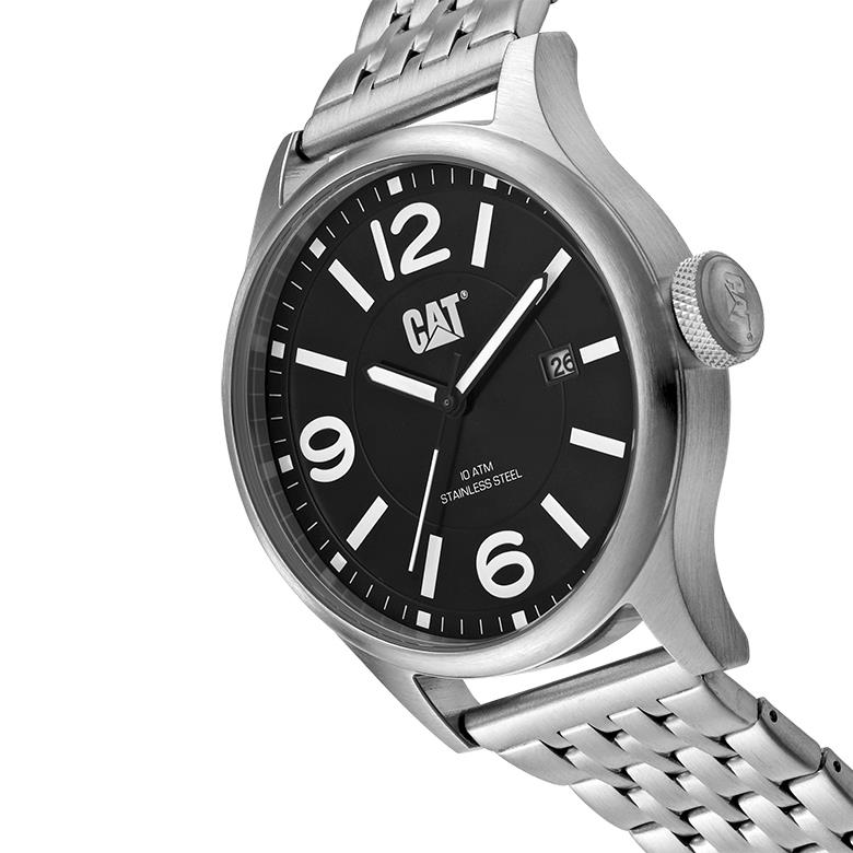 ساعت مچی مردانه کاترپیلار cat با طراحی اسپرت بند استیل و قاب استیل و صفحه گرد مشکی با قابلیت داشتن شب نما / تقویم با موتور ژاپنی و انرژی باتری و مقاوم در برابر آب تا عمق 100 متر به همراه گارانتی بین المللی