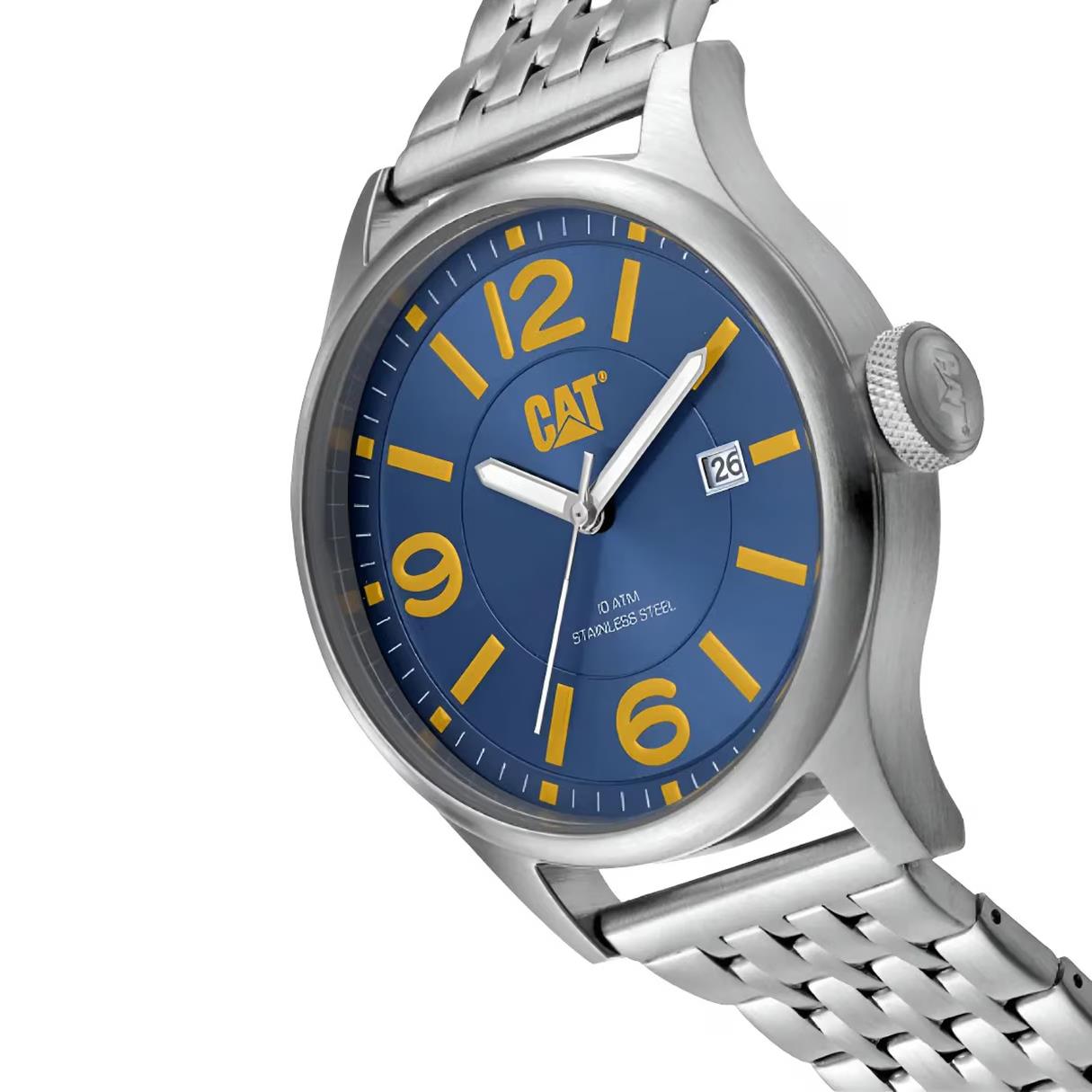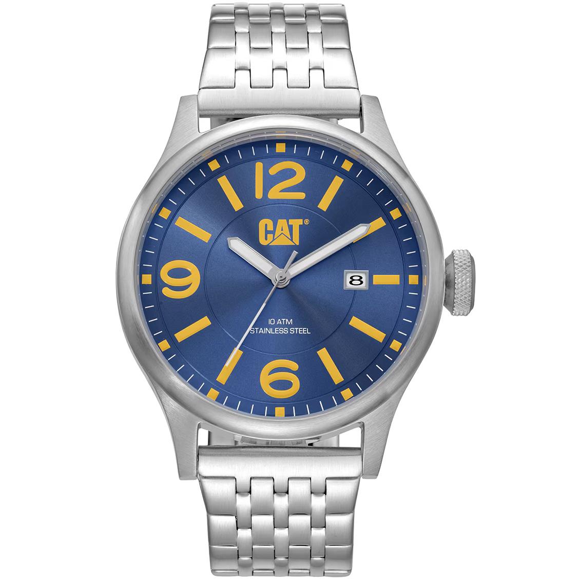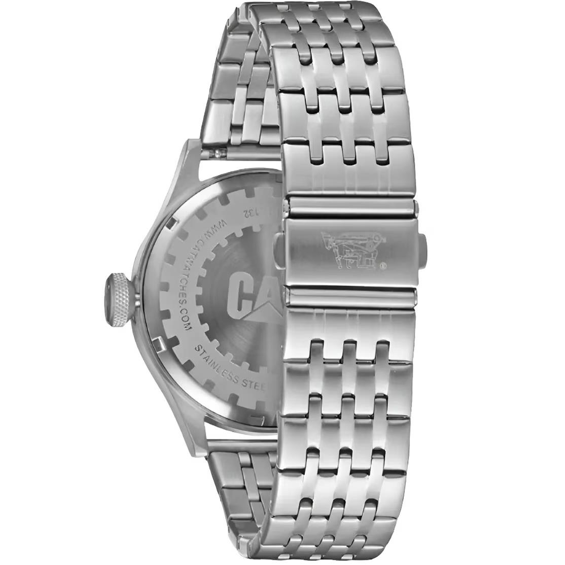 ساعت مچی مردانه کاترپیلار cat با طراحی اسپرت بند استیل و قاب استیل و صفحه گرد سرمه ای با قابلیت داشتن شب نما / تقویم با موتور ژاپنی و انرژی باتری و مقاوم در برابر آب تا عمق 100 متر به همراه گارانتی بین المللی