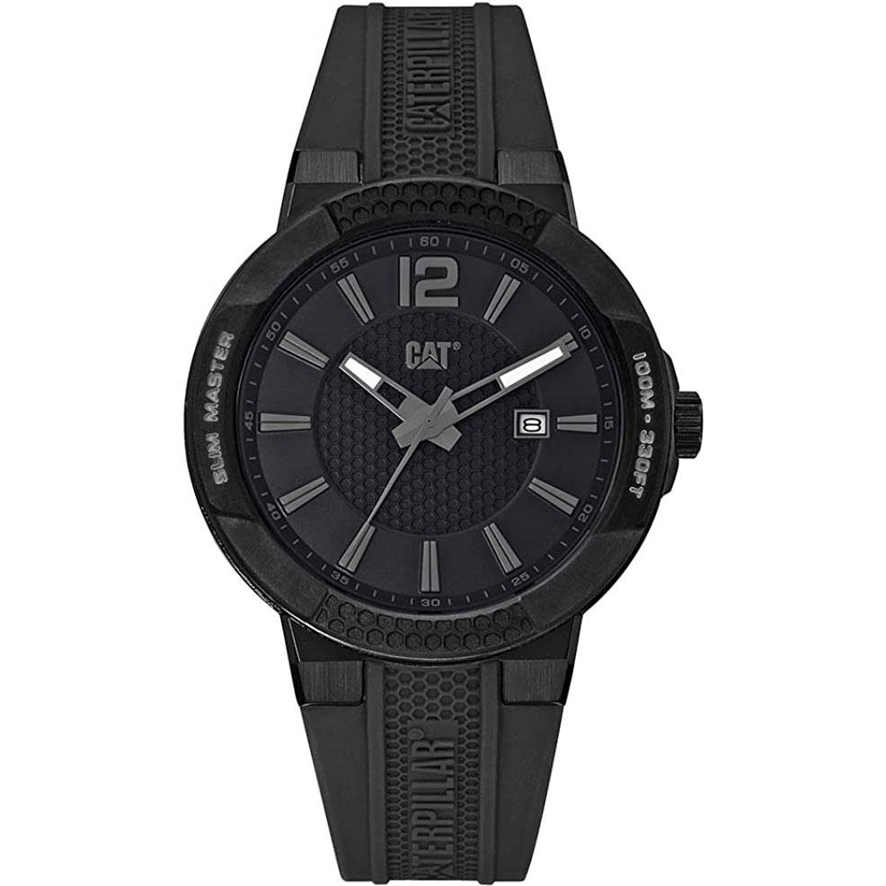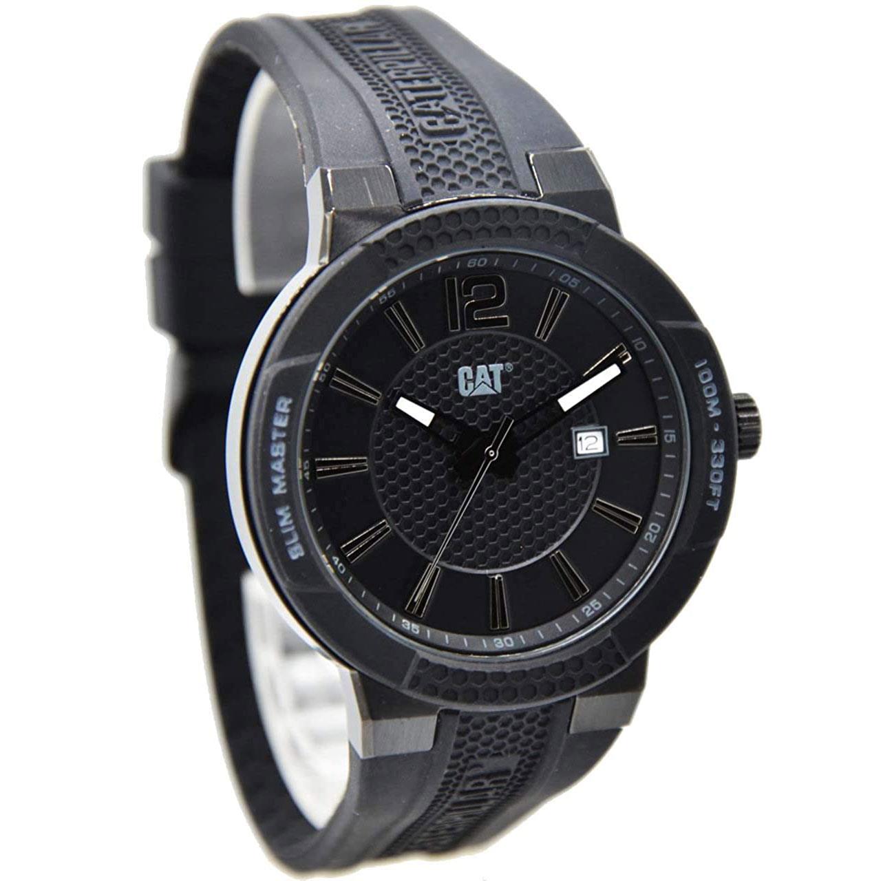 ساعت مچی مردانه کاترپیلار cat با طراحی اسپرت بند سیلیکونی مشکی و قاب گرد مشکی و صفحه گرد مشکی با قابلیت داشتن تقویم/ شب نما با موتور ژاپنی و انرژی باتری و مقاوم در برابر آب تا عمق 100 متر به همراه گارانتی بین المللی