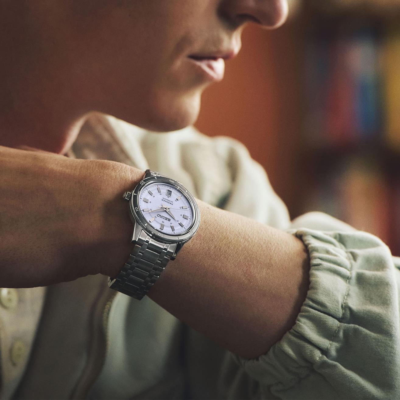 ساعت مچی مردانه سیکو seiko با طراحی روزانه بند استیل, قاب گرد دو رنگ و صفحه گرد آبی با قابلیت داشتن تقویم / شبنما و موتور اتوماتیک ژاپنی با انرژی مکانیکی و مقاوم در برابر آب تا عمق 50 متر به همراه گارانتی بین المللی