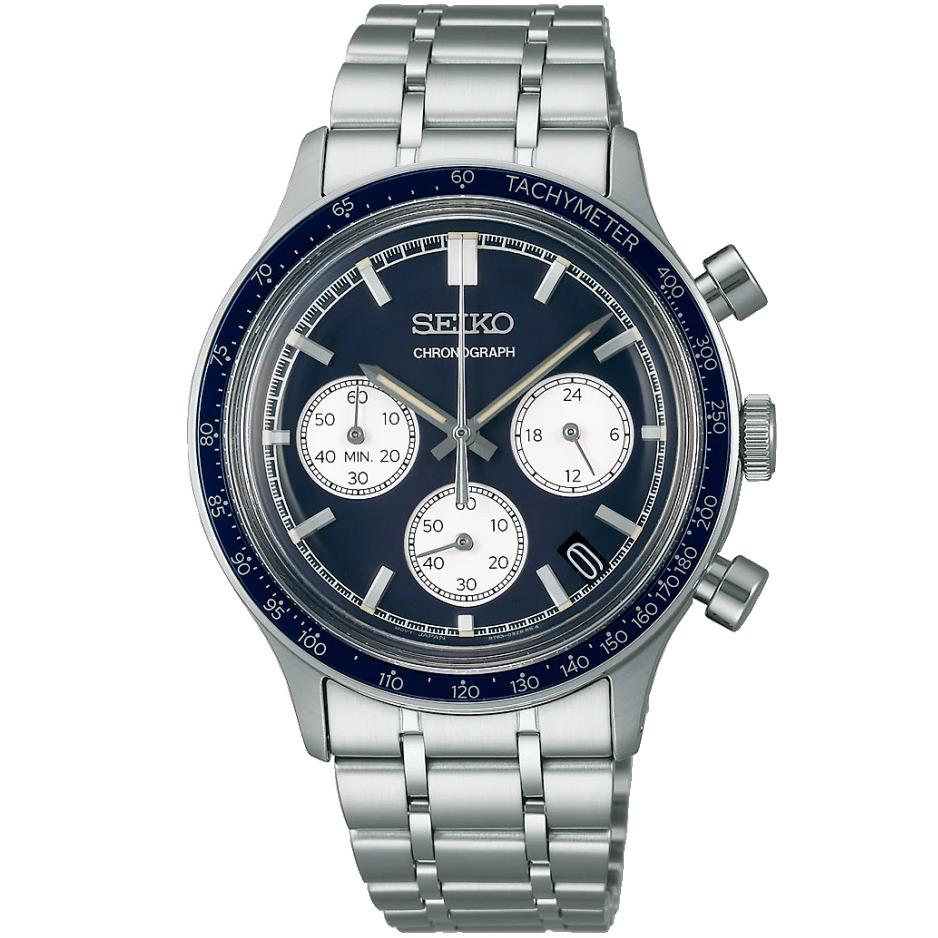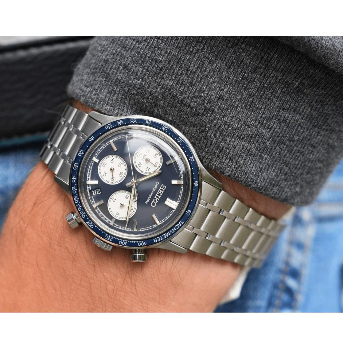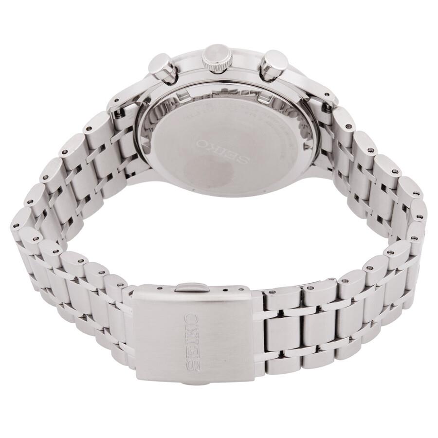 ساعت مچی مردانه سیکو seiko با طراحی روزانه بند استیل, قاب گرد استیل سرمه ای و صفحه گرد سرمه ای سفید با قابلیت داشتن تقویم / شبنما / کرنوگراف/ زه تاچی متر و موتور ژاپنی با انرژی باطری و مقاوم در برابر آب تا عمق 100 متر به همراه گارانتی بین المللی