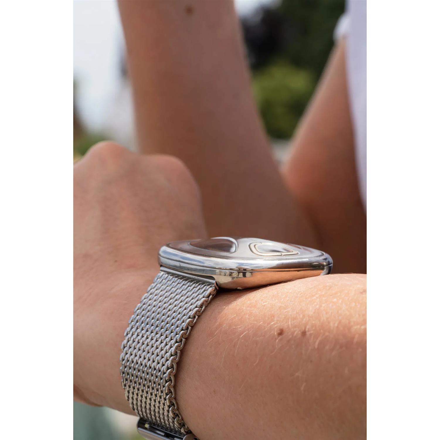 ساعت مچی مردانه سون فرایدی sevenfriday با طراحی اسپرت بند حصیربافت استیل , قاب مربع استیل و صفحه مربعی سبز/ نقره ای و موتور ژاپنی با انرژی باتری و مقاومت در برابر آب تا عمق 30 متر به همراه دو سال گارانتی بین المللی